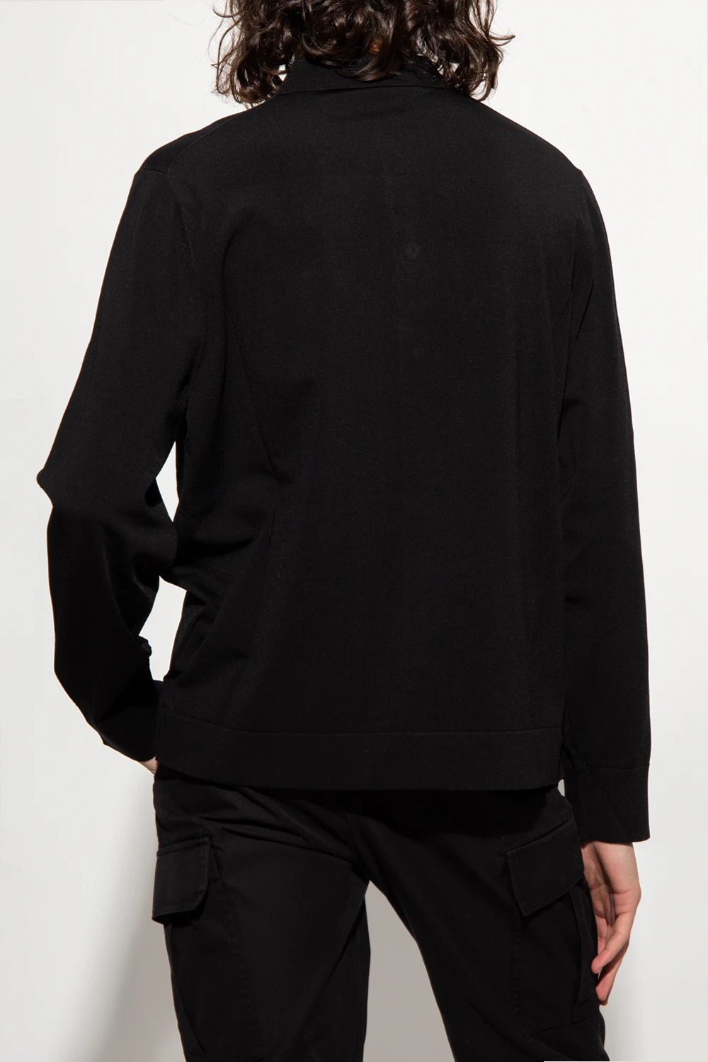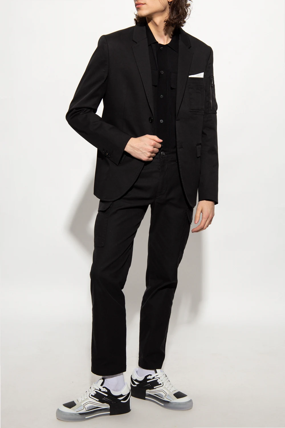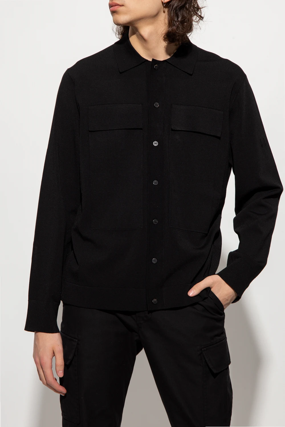 Czarna koszula o luźnym kroju Neil Barrett. Zapinana na guziki. Z przodu dwie kieszenie z patką. Długie rękawy zakończone ściągaczami.