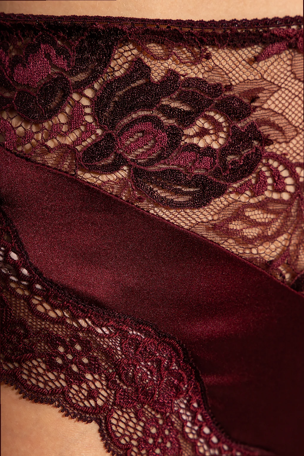 Bordowe figi z wysokim stanem Saint Laurent. Koronkowe wykończenie.