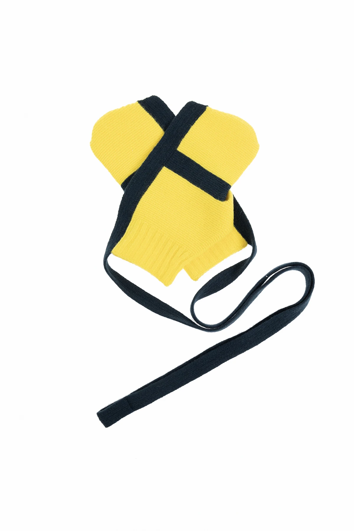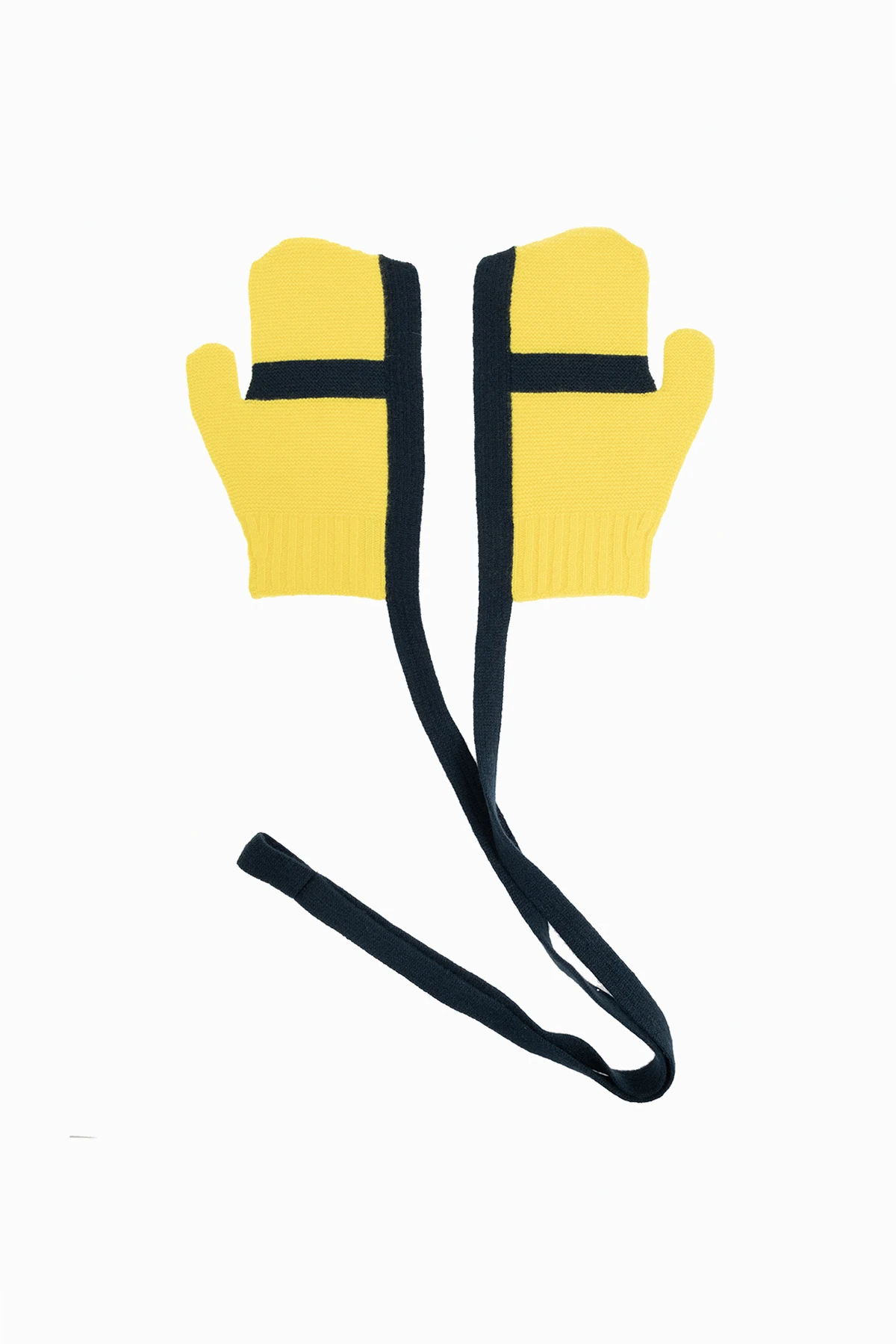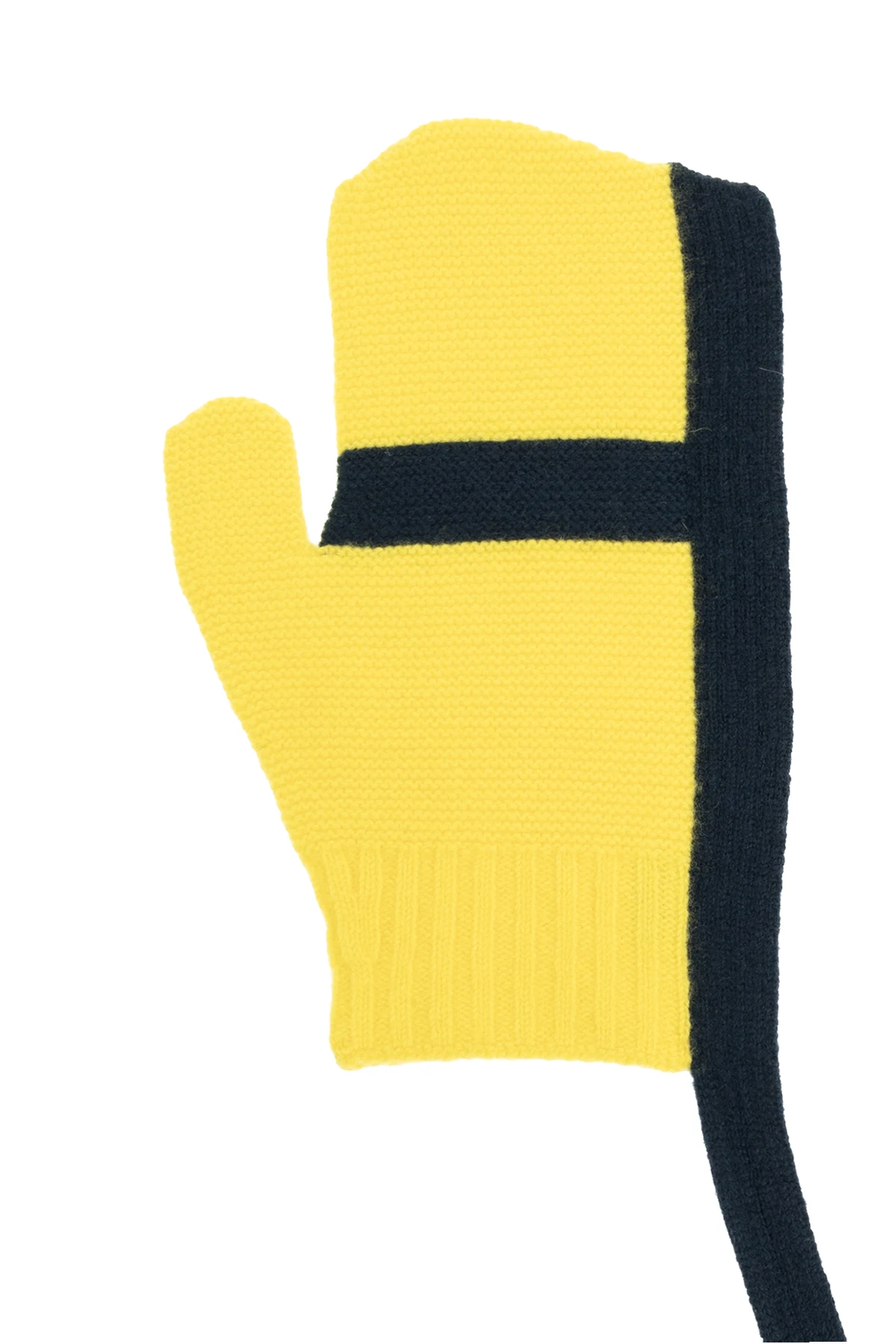 Granatowo-żółte rękawiczki Issey Miyake Homme Plisse. Wykonane z wełny. Wykończone ściągaczem. Łączone sznurkiem.