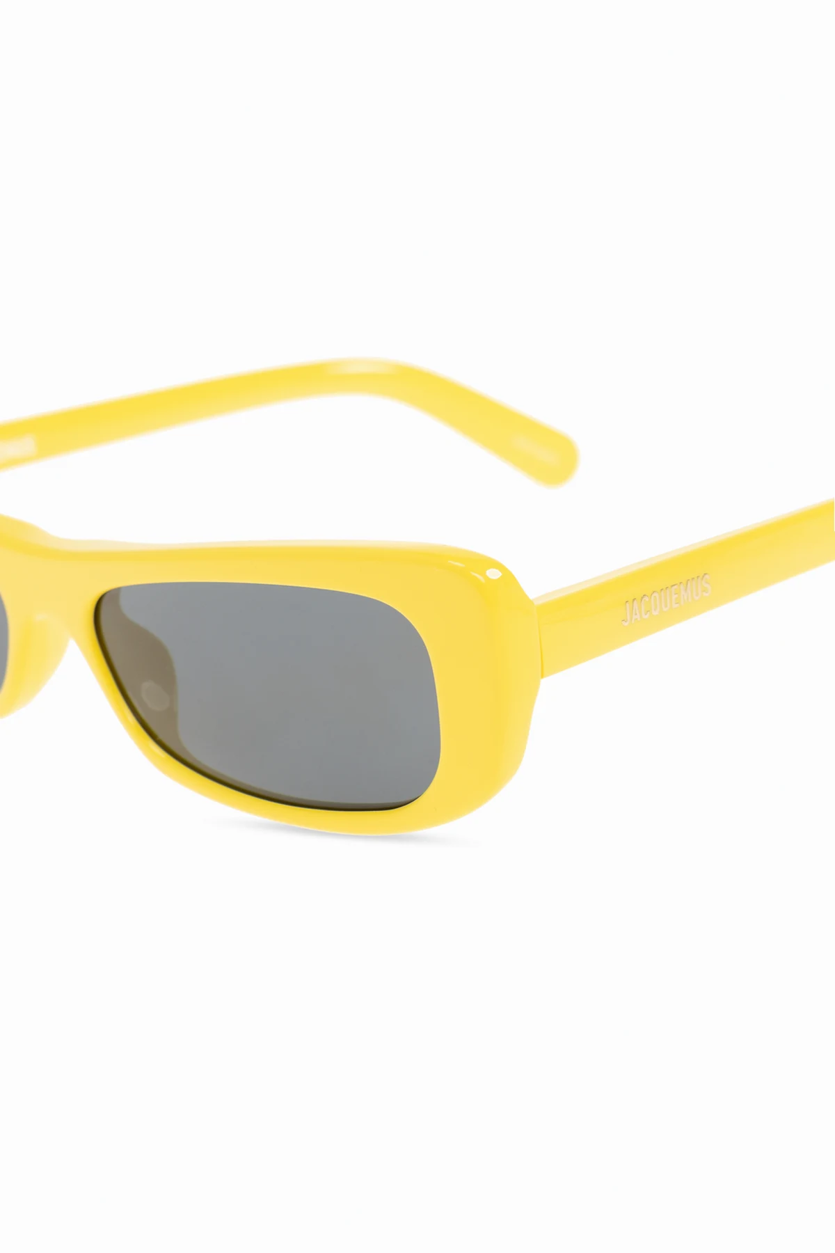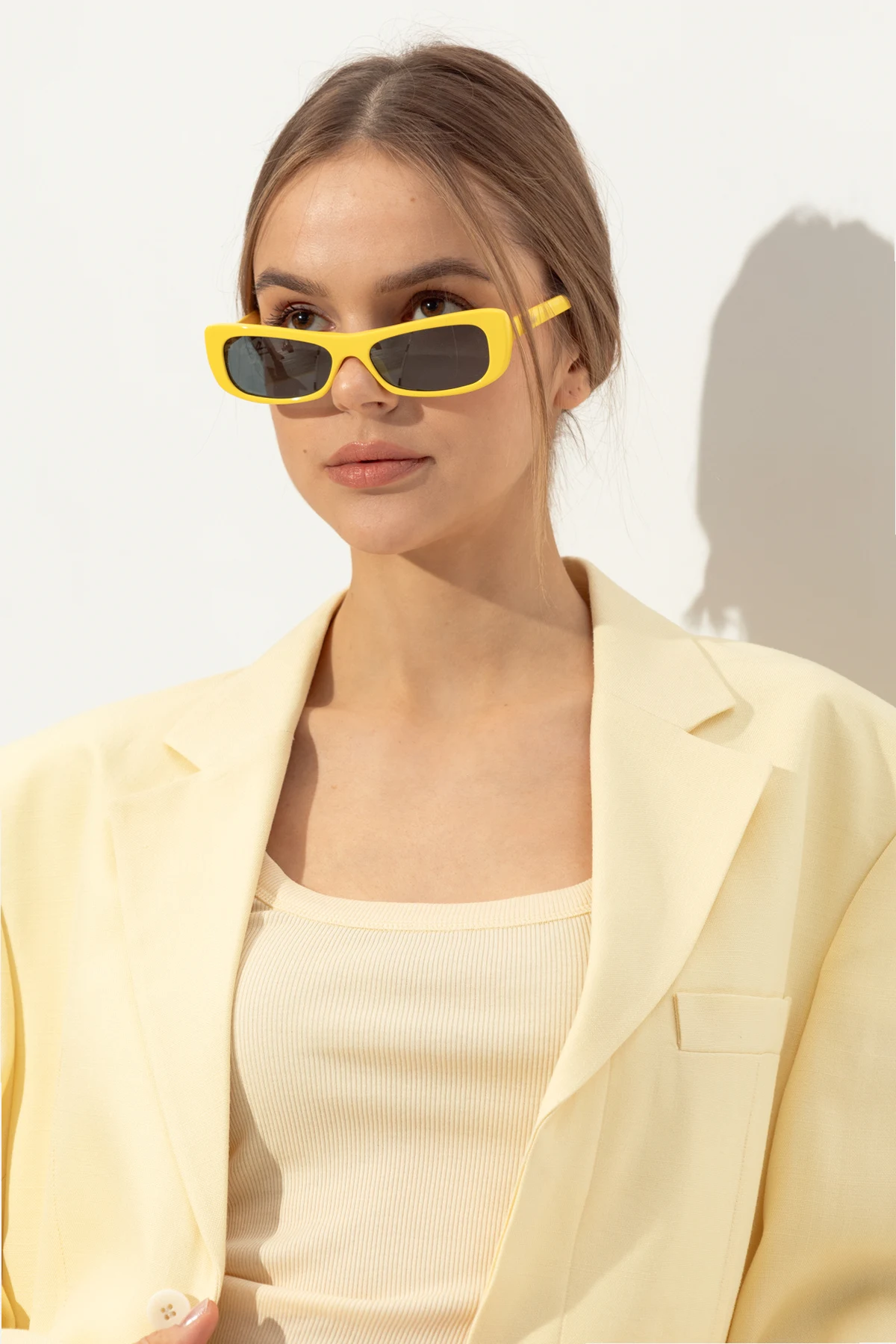 Intensywny żółty kolor i prostokątne oprawki dla wyrazistego stylu.