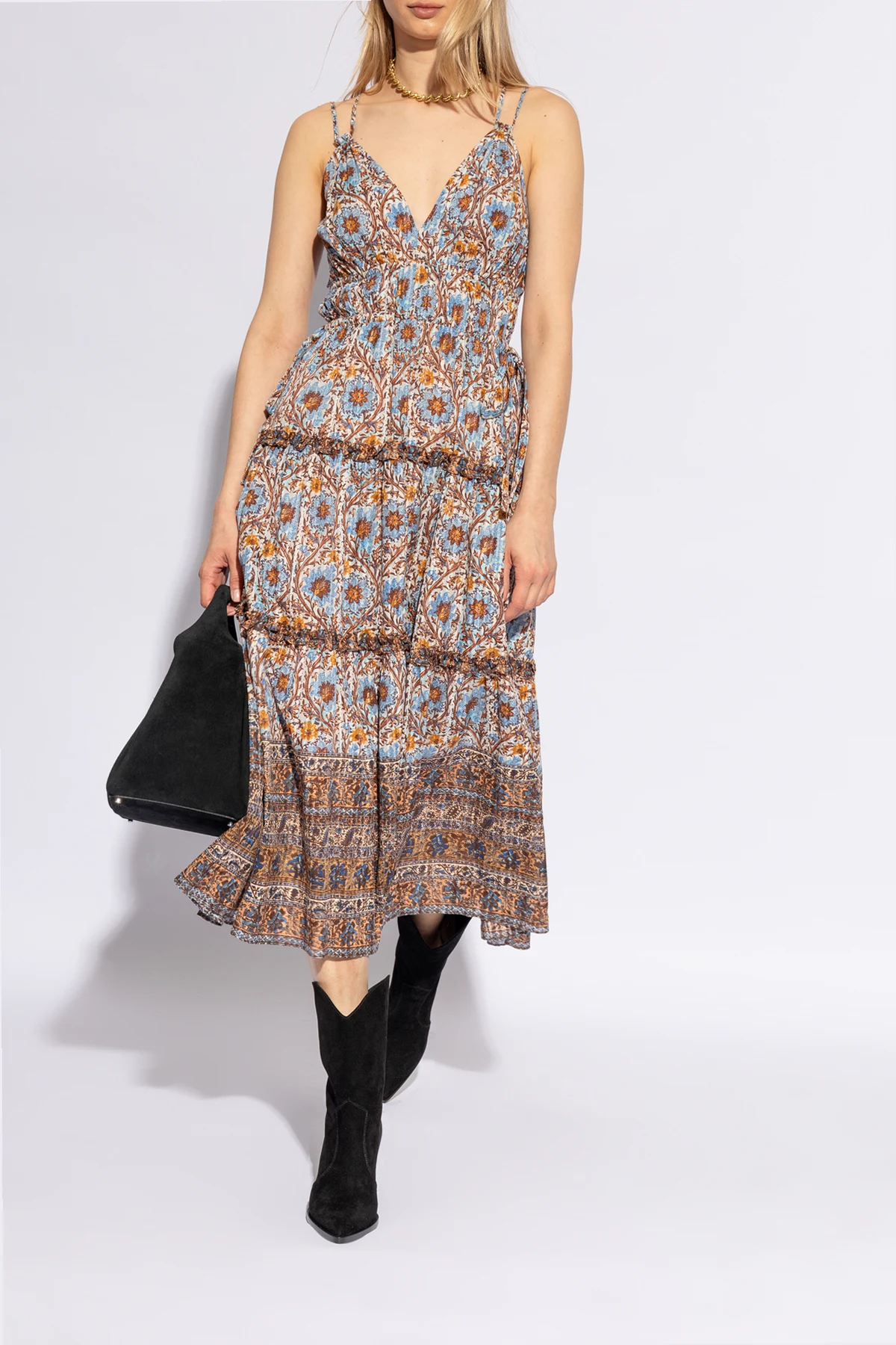 Botki mają klasyczny kształt kowbojek z lekko zaokrągloną cholewką, która wykończona jest w kształcie litery V, co dodaje im oryginalności i stylu.