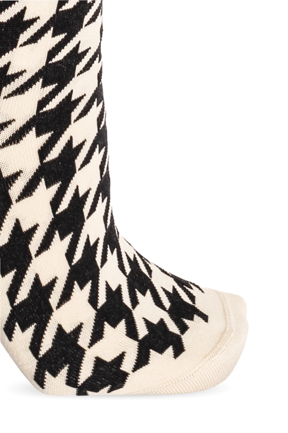 Kremowo-czarne rajstopy Burberry. Wykonane z mieszanki bawełny. W pasie wszyta guma. Ozdobione wzorem w pepitkę.