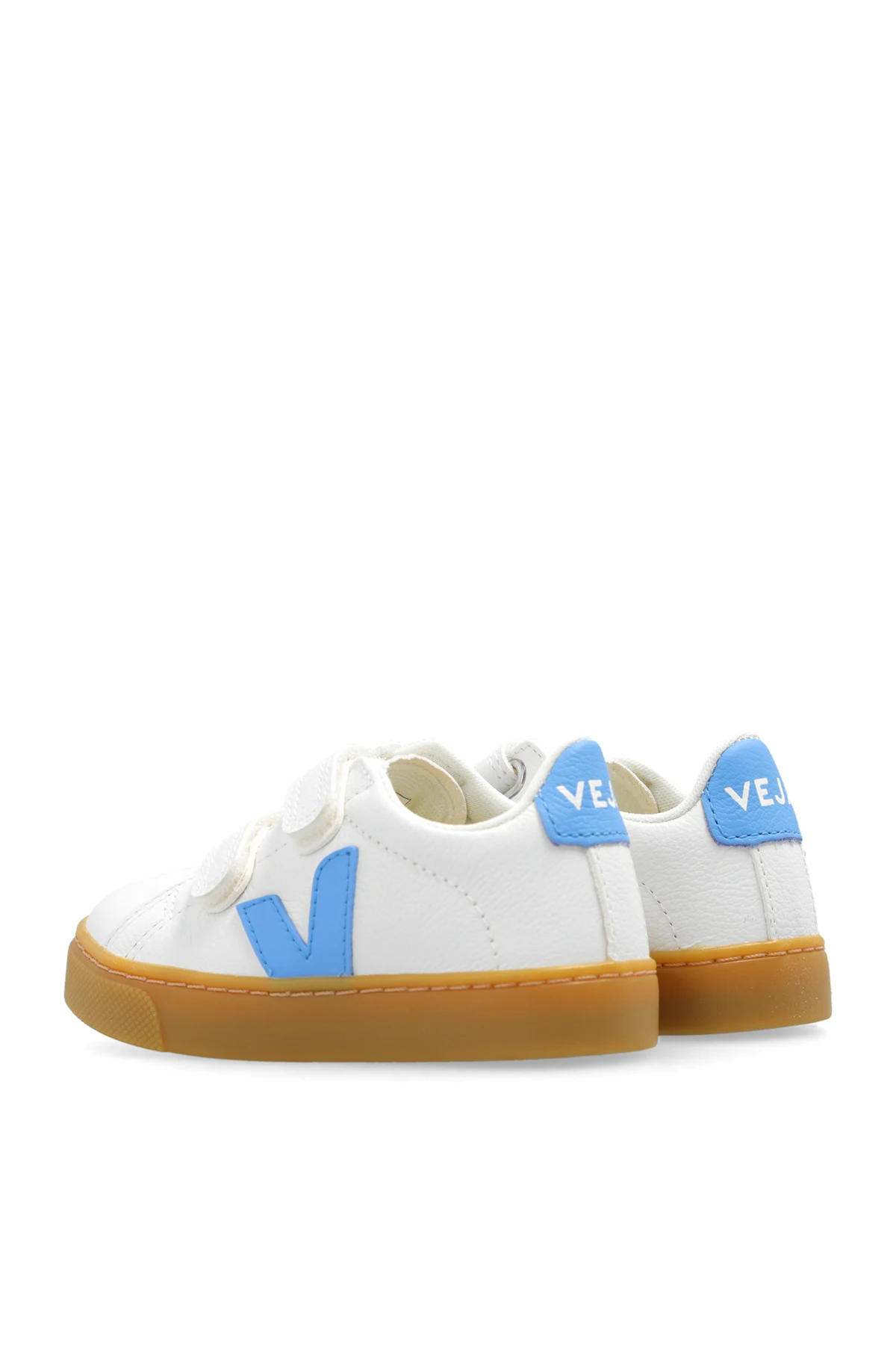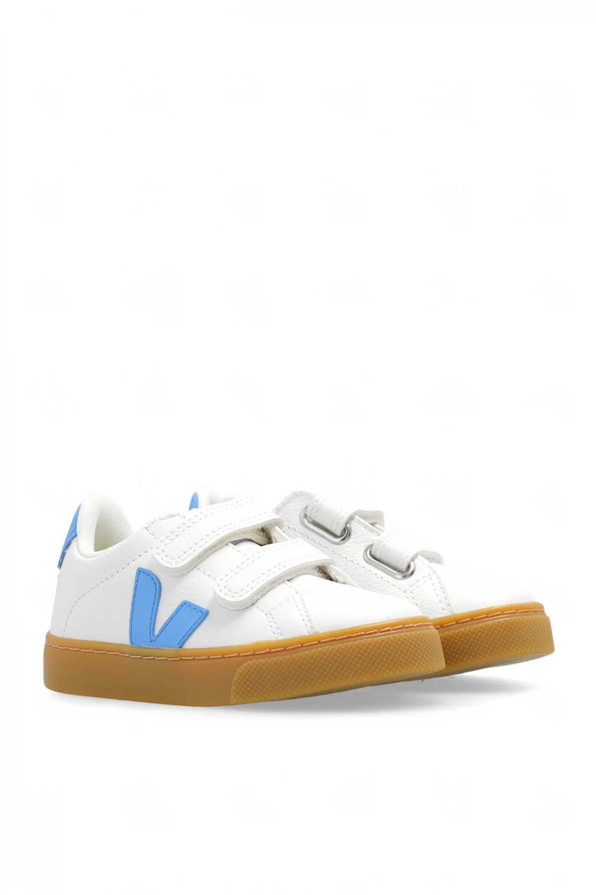 Białe buty sportowe, model ‘Esplar Chromefree Leather’ Veja Kids. Wykonane ze skóry bez użycia chromu. Zapinane na podwójne rzepy. Ozdobione nadrukowanym logo. Charakterystyczna dla marki naszywka w kolorze niebieskim. Warstwa wewnętrzna o specjalnej, siateczkowej strukturze wykonana z materiału pochodzącego z recyklingu – cechuje się wyjątkową odpornością na tarcie. Wkładka wykonana z trzciny cukrowej, gumy Amazon, bawełny organicznej i pochodzącej z recyklingu pianki EVA. Beżowa, gumowa podeszwa wykonana z materiałów organicznych oraz pochodzących z recyklingu. Model nazwany w hołdzie brazylijskiej organizacji pozarządowej, z którą marka współpracuje od 2005 roku. ESPLAR (Escritório de Planejamento e Assessoria Rural) wspiera ekologiczne i rodzinne rolnictwo w regionie Nordeste.