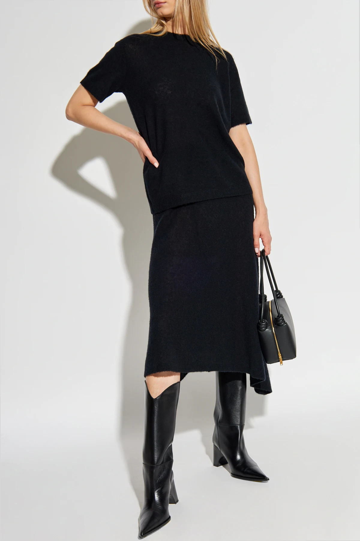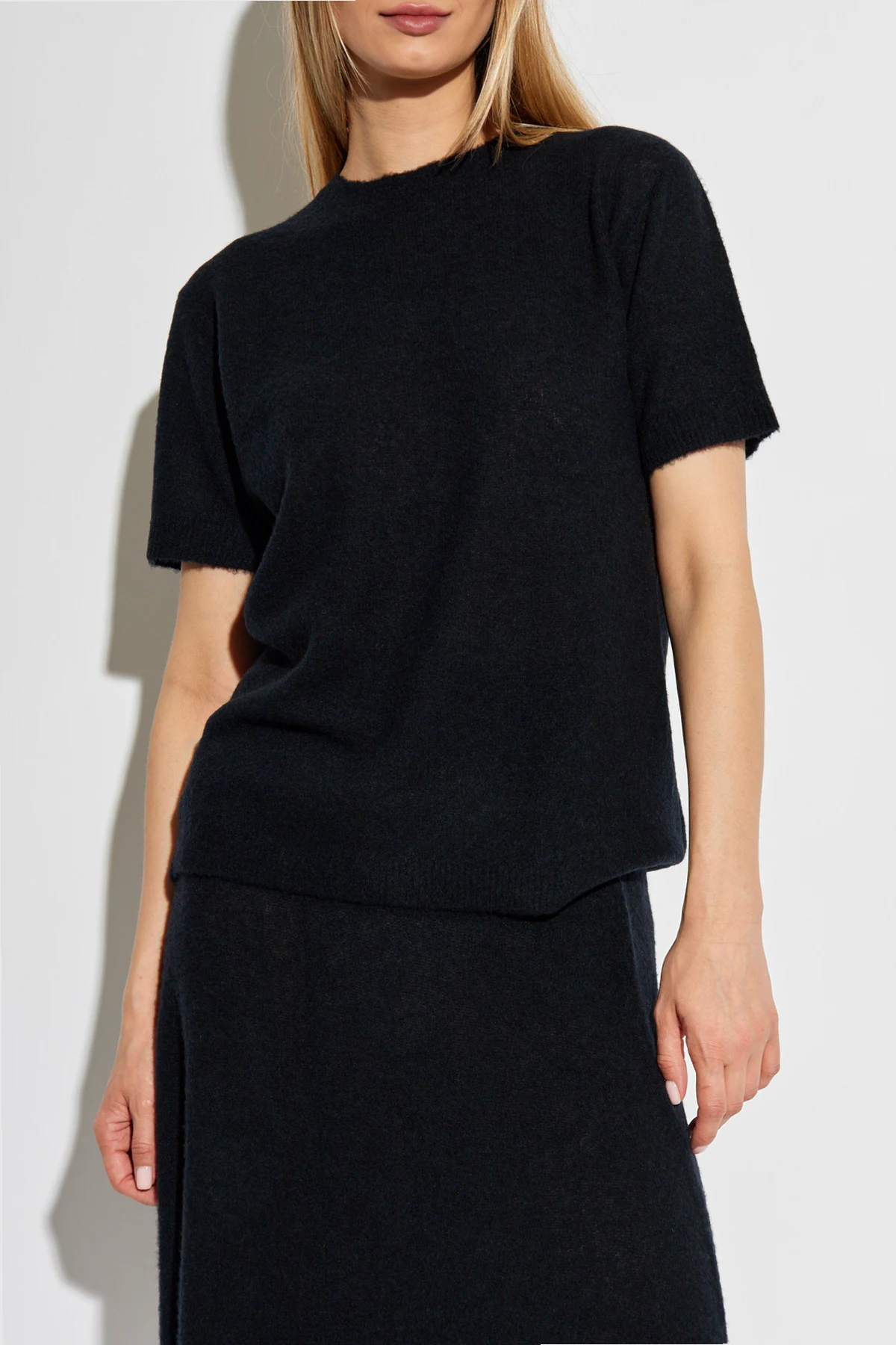 Przedstawiamy Państwu wykwintny t-shirt "Paprika" od cenionego projektanta HERSKIND , który swoim klasycznym krojem oraz uniwersalnym kolorem czerni, staje się kwintesencją elegancji w codziennym wydaniu. Wykonany z niezwykle szlachetnej mieszanki wełny, nylonu oraz kaszmiru , zapewnia jednocześnie komfort noszenia i wysoką trwałość. Zwróćmy uwagę na dekolt okrągły, który dodaje t-shirtowi subtelności oraz na delikatną teksturę materiału, widoczną szczególnie przy metce z logo projektanta, co świadczy o dbałości o detale i wysokiej jakości wykonania.