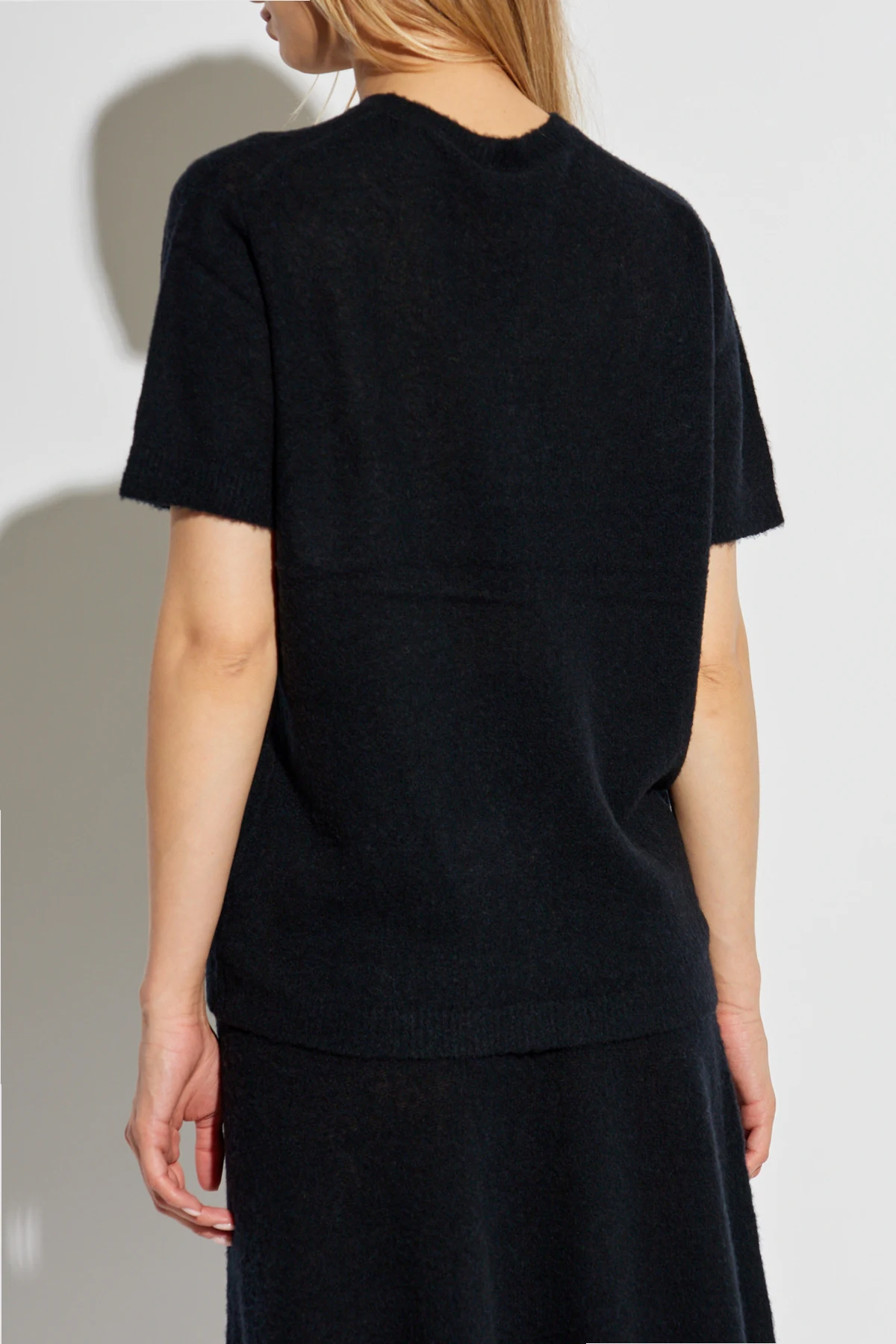 Ekskluzywne detale – subtelna tekstura materiału oraz elegancko umieszczone logo projektanta podkreślają luksusowy charakter t-shirtu.