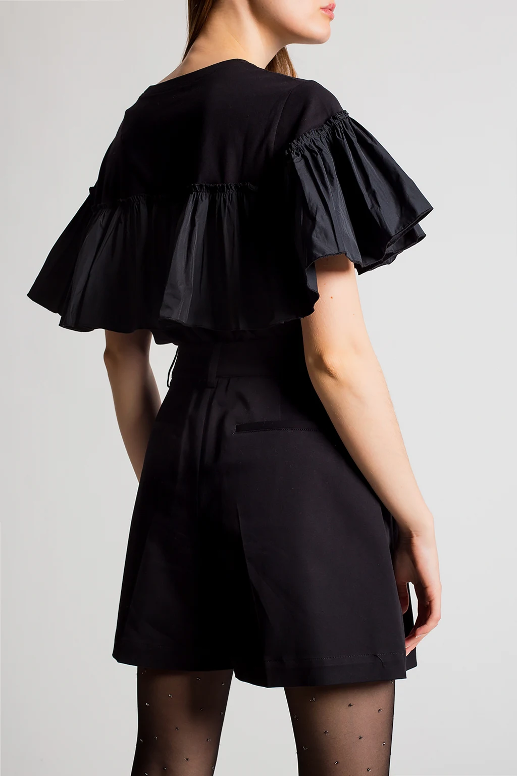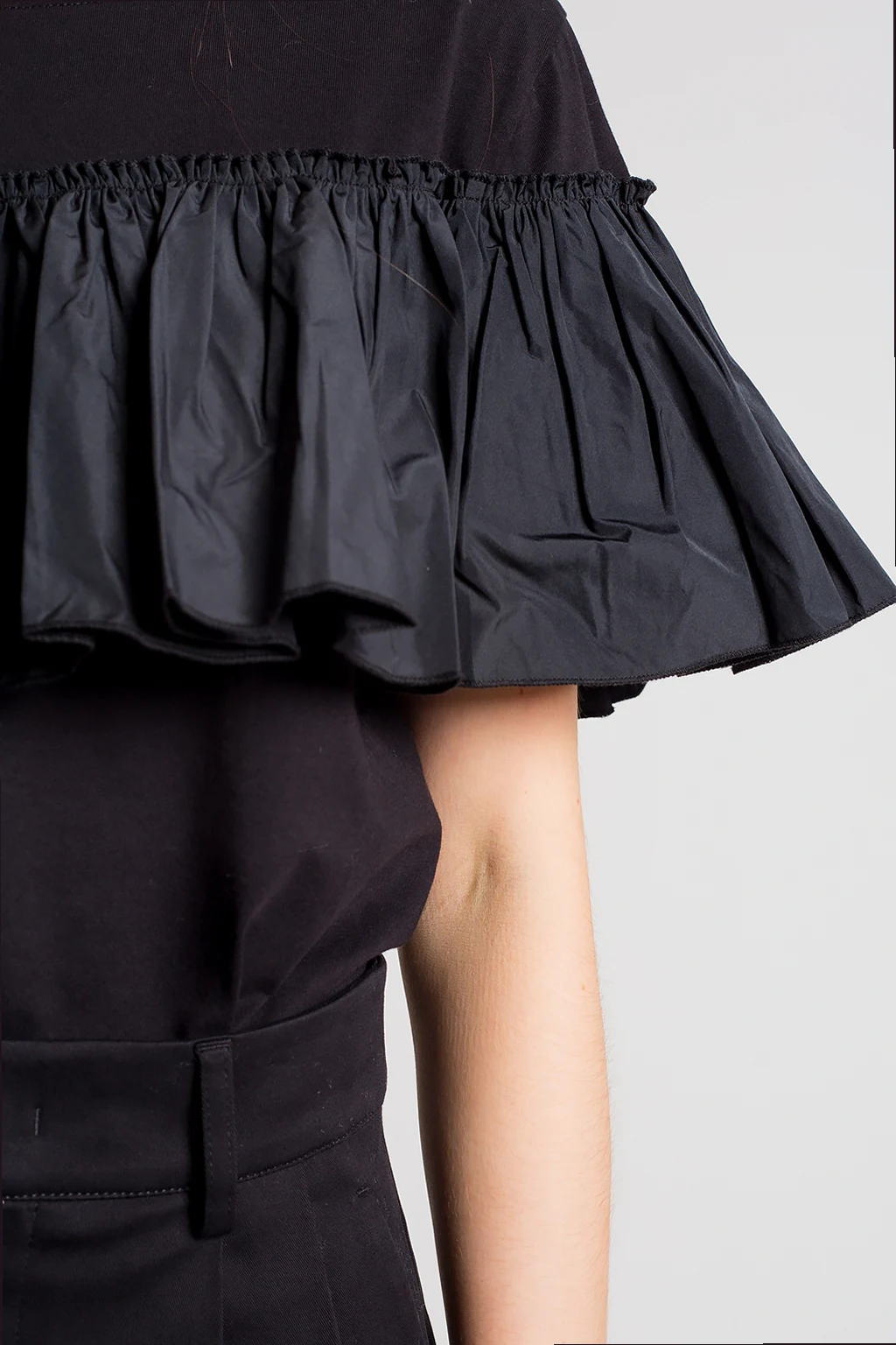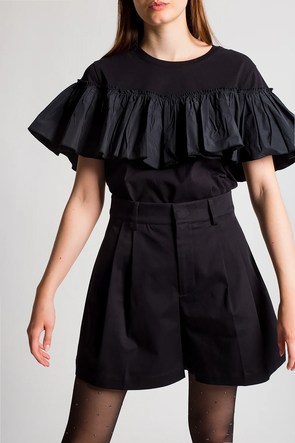 Czarny t-shirt Red Valentino. Wykonany z bawełny. Dekoracyjna falbana. Okrągły dekolt.