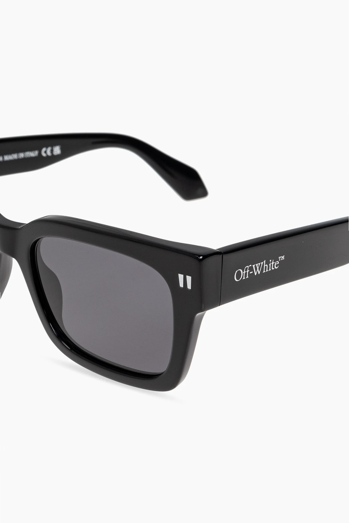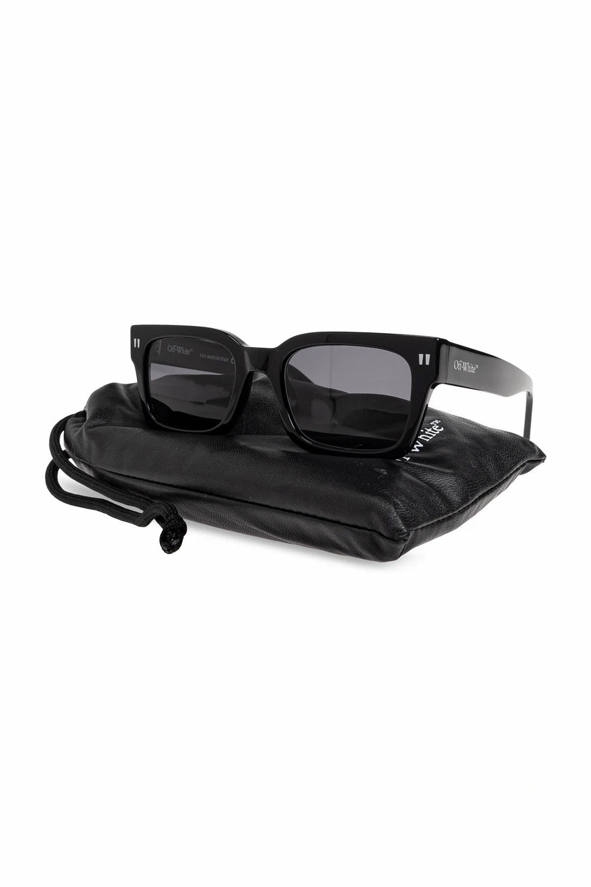 Przedstawiamy okulary przeciwsłoneczne "Midland" z ekskluzywnej kolekcji marki Off-White . Te eleganckie okulary łączą w sobie klasyczny prostokątny kształt z pełnymi, błyszczącymi czarnymi oprawkami, wykonanymi z najwyższej jakości acetatu. Dodatkowo, subtelne, białe detale na froncie oprawek oraz logo "Off-White" na zausznikach podkreślają prestiż i charakter produktu.