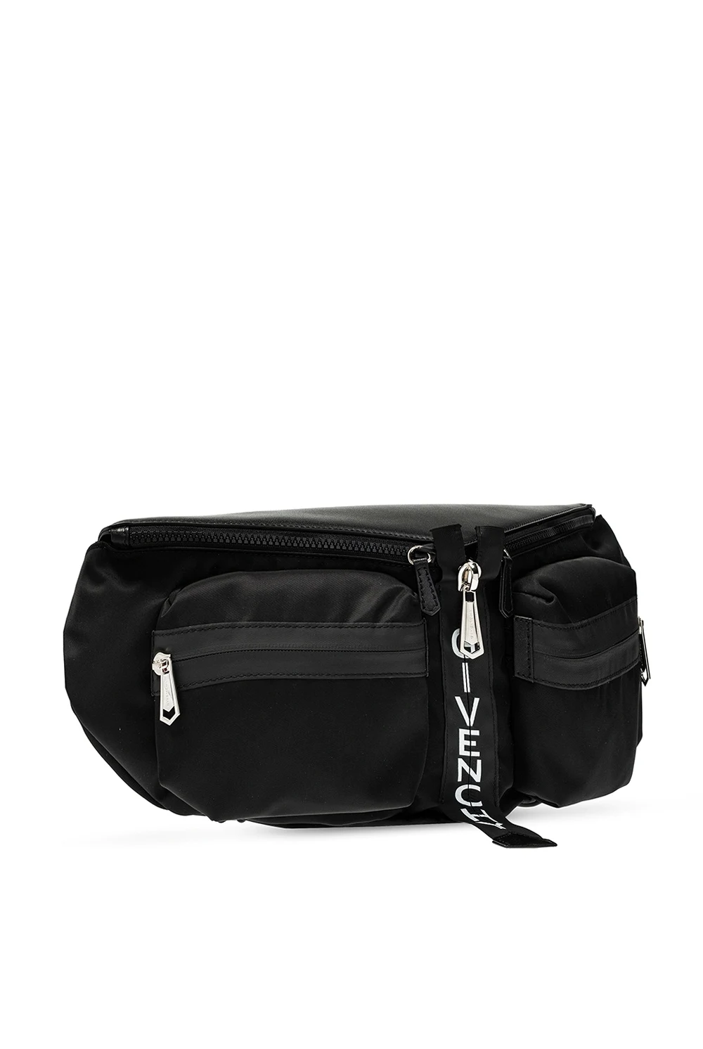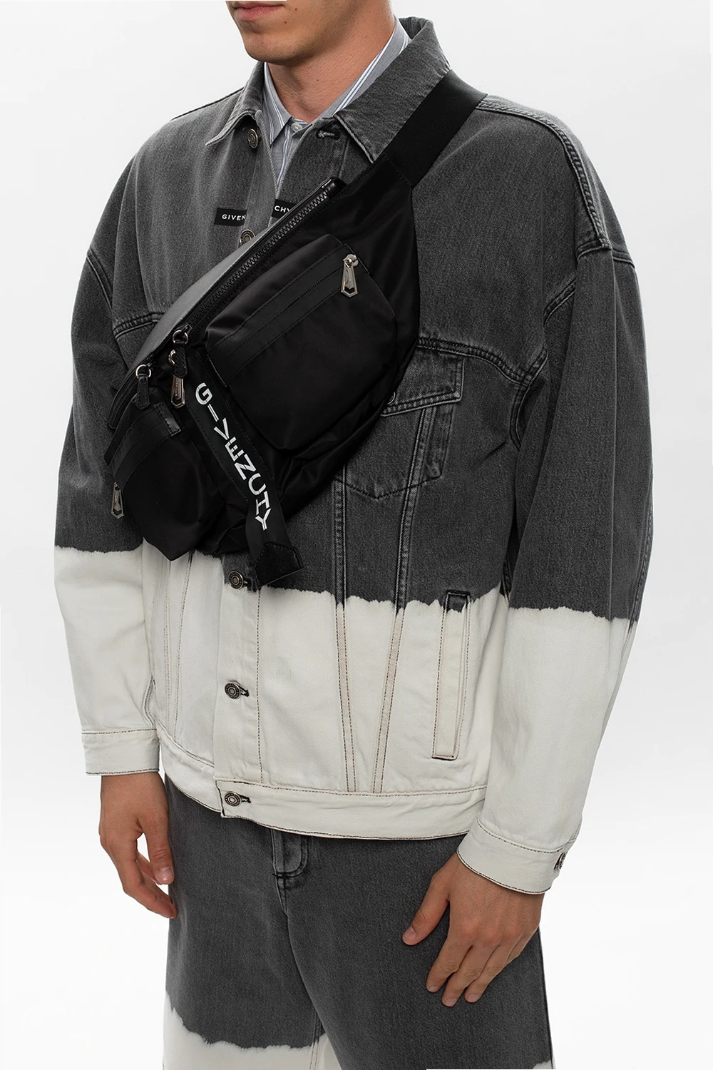 Czarna torba na pas, model ‘Spectre’ Givenchy. Zamykana na zamek. Z przodu dwie kieszenie zamykane na zamek. Ozdobiona nadrukowanym logo w kolorze białym. Regulowany pas.