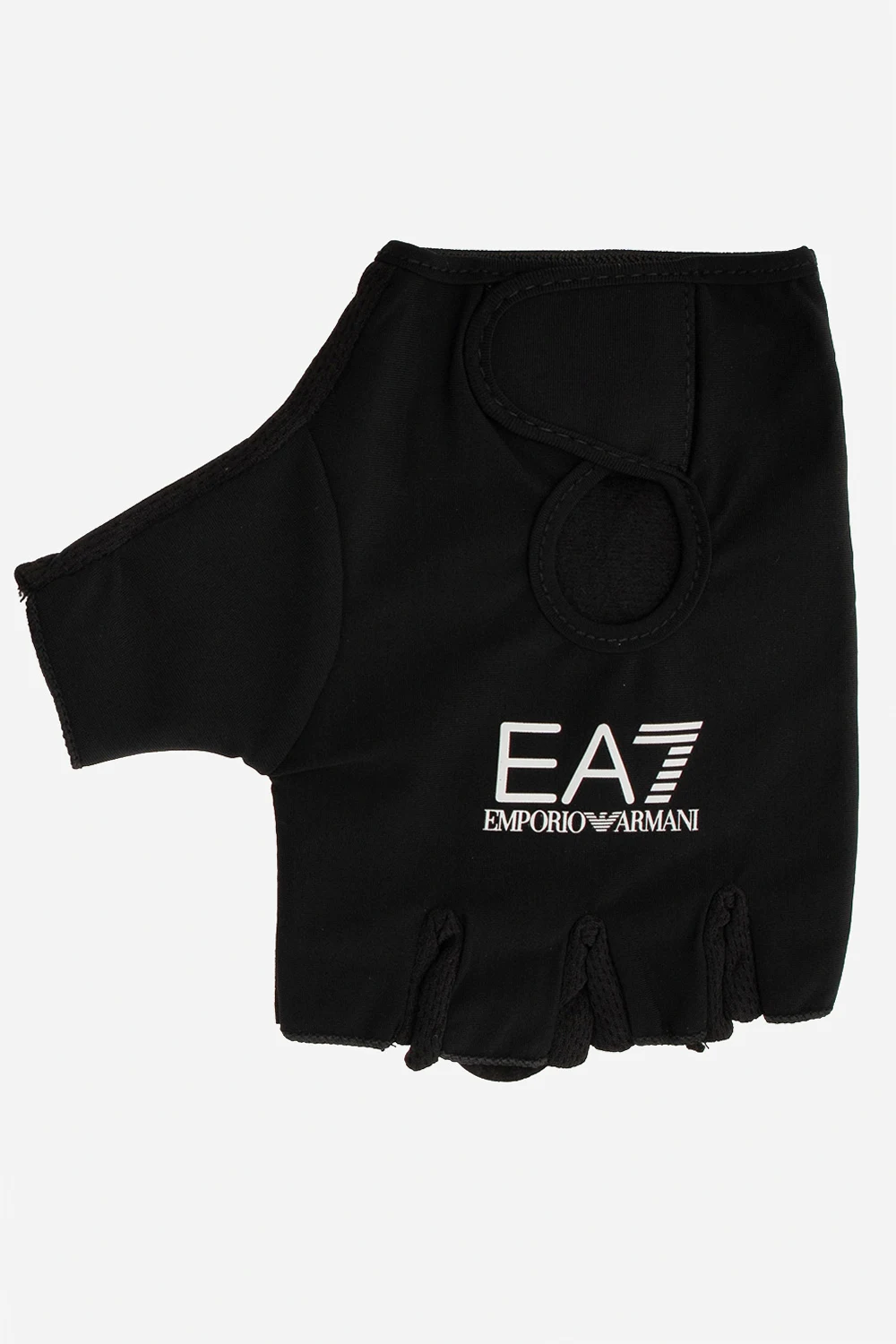 Czarne rękawice bez palców EA7 Emporio Armani. Zapinane na pasek z rzepem. Ozdobione nadrukowanym logo w kolorze białym.