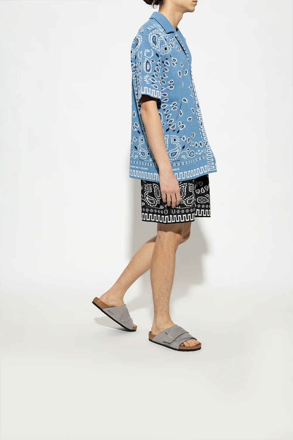 Szare klapki, model ‘Kyoto’ Birkenstock. Wykonane z nubuku. Zapinane na rzepy. Standardowa szerokość. Czarno-brązowa podeszwa wykonana z naturalnego korka oraz pianki EVA.