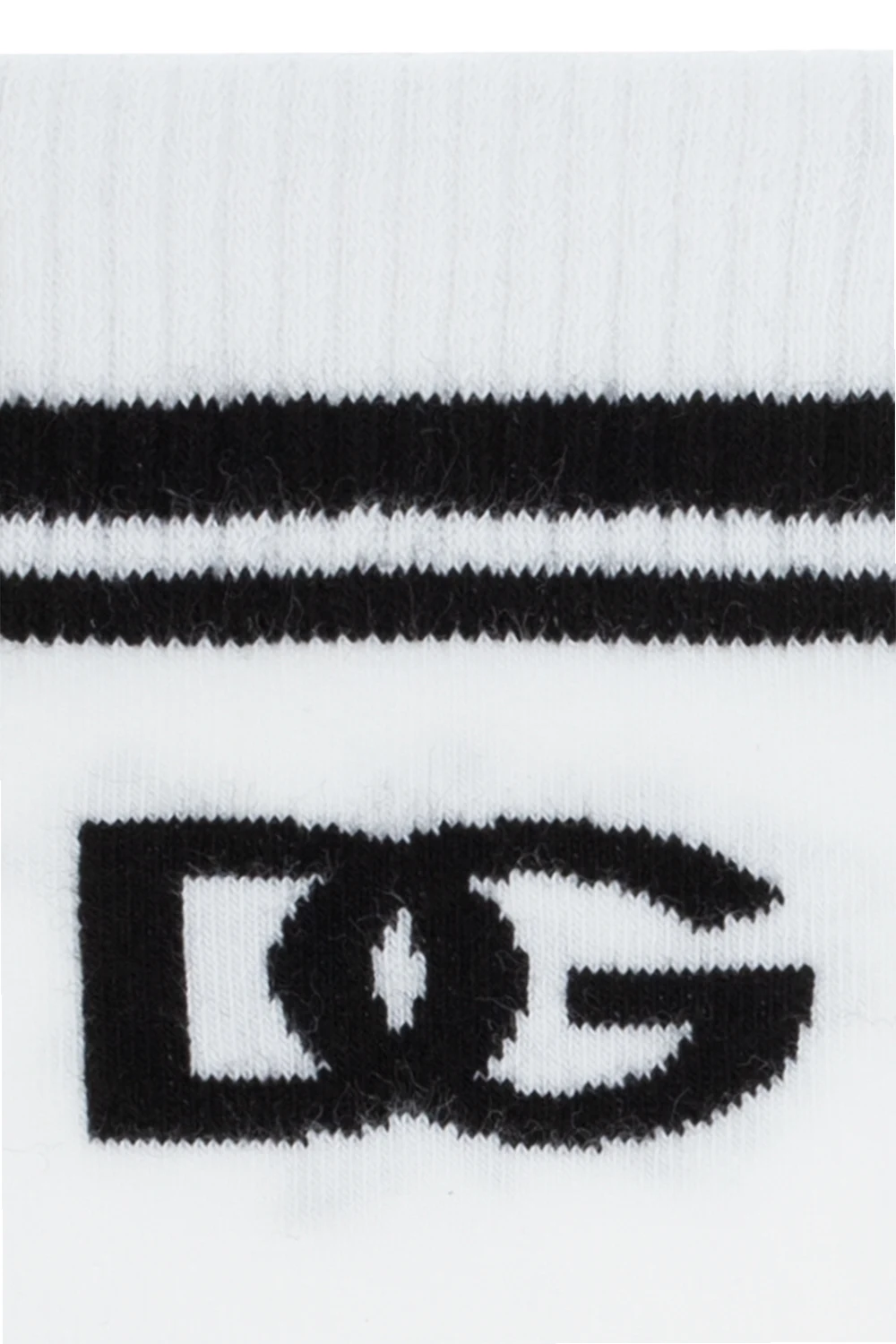 Biało-czarne skarpety Dolce & Gabbana Kids. Wykonane z bawełny. Ozdobione paskami oraz monogramem w kolorze czarnym.
