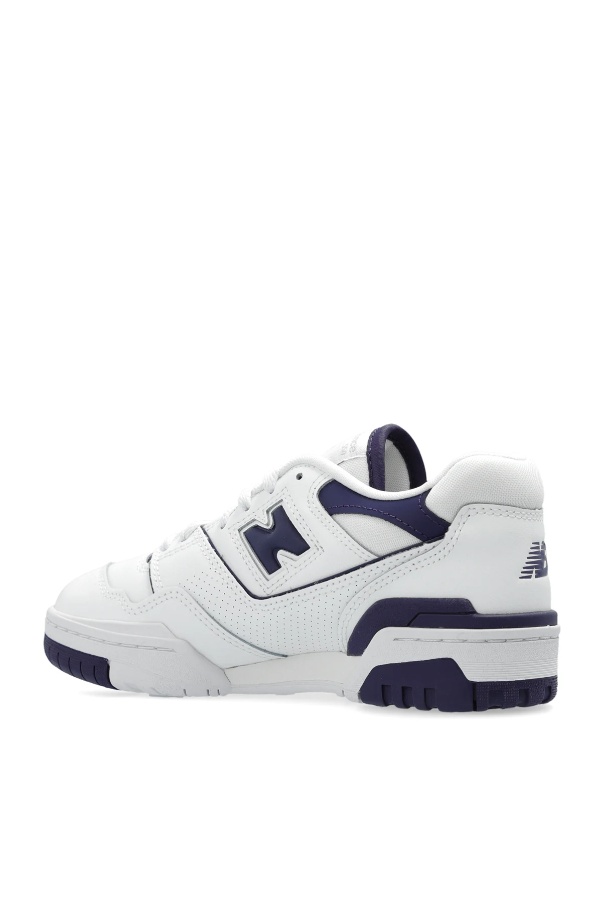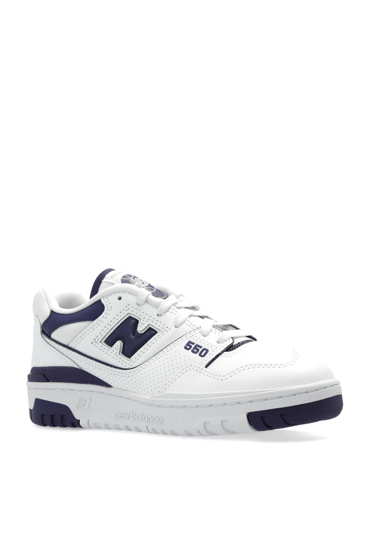 Biało-granatowe, sznurowane buty sportowe, model ‘BBW550BA’ New Balance. Wykonane ze skóry i materiału. Ozdobione aplikacją z logo oraz oznaczeniem serii modelu. Biało-granatowa, gumowa podeszwa.