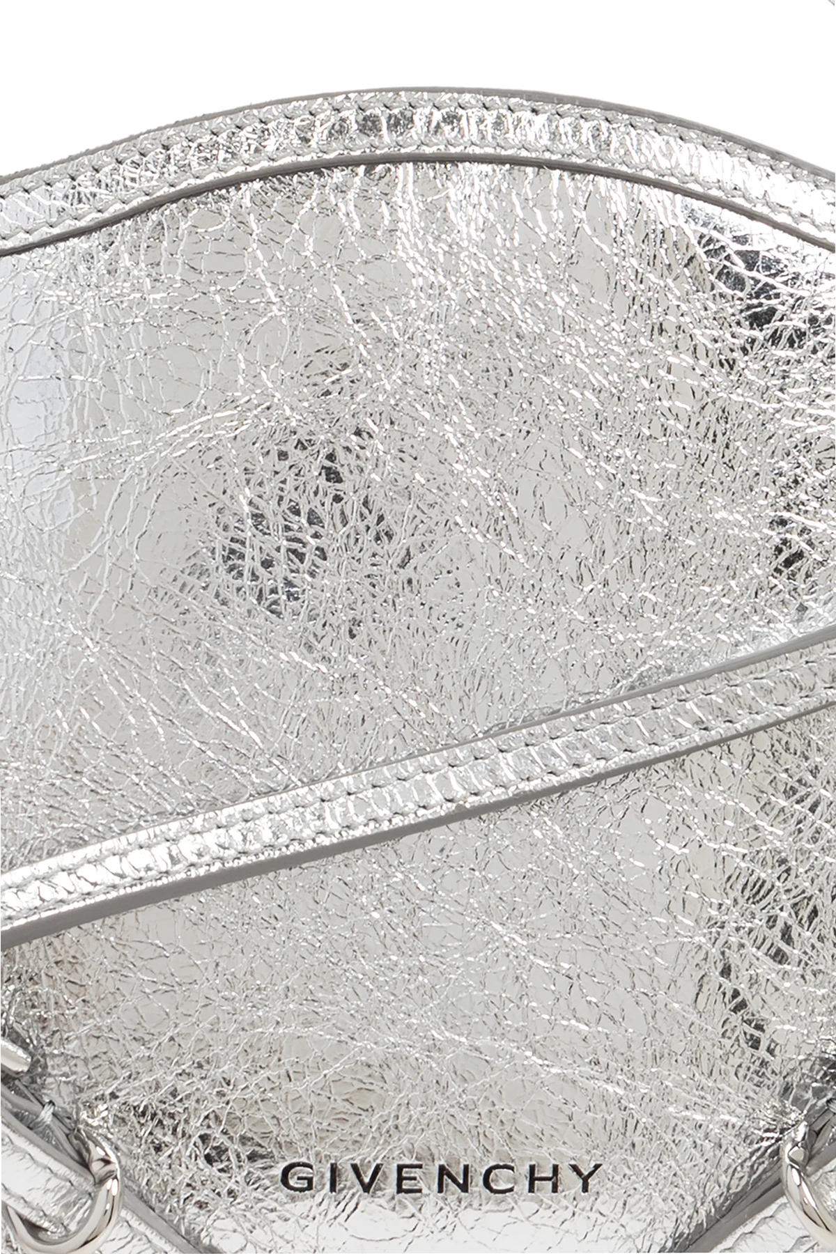 Wykonana z błyszczącej srebrnej skóry , której faktura przypomina popękaną powierzchnię, torba emanuje luksusem i oryginalnością. Na przodzie subtelnie umieszczono logo "GIVENCHY", dodając jej prestiżu. Wyposażona w cienki pasek, doskonale sprawdza się zarówno noszona przez ramię, jak i w ręku.