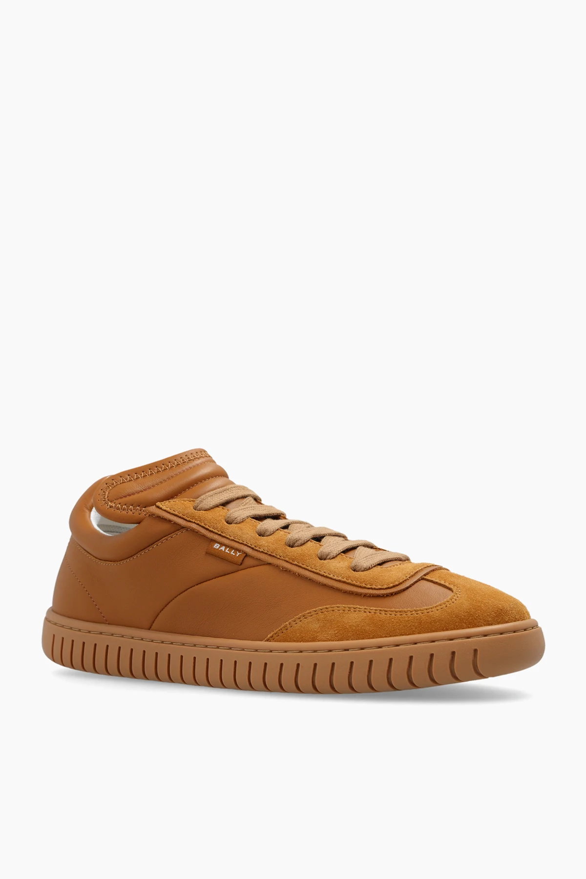 Brązowe, sznurowane buty sportowe, model ‘Parrel’ Bally. Wykonane ze skóry i zamszu. Dekoracyjnie pikowany język. Z boku naszywka z logo. Brązowa, gumowa podeszwa.