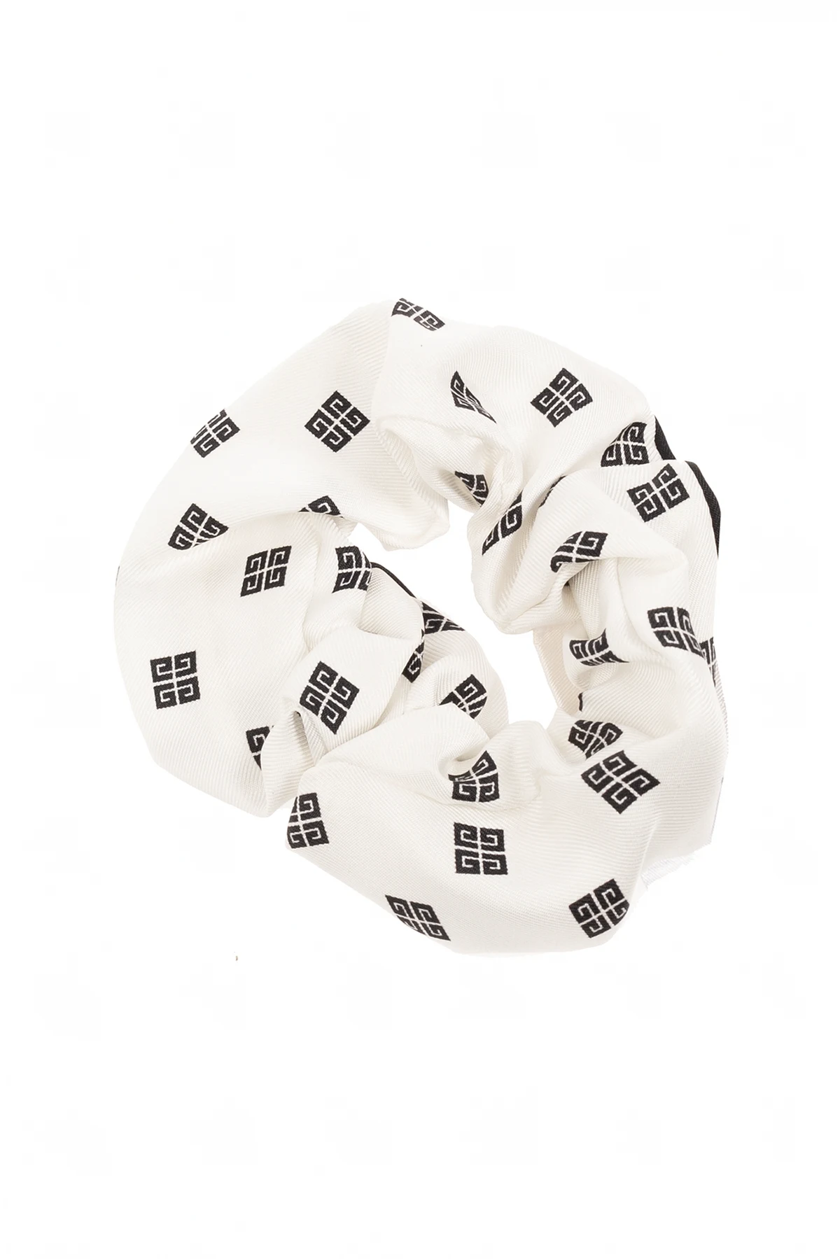 Czarno-biały dwupak gumek do włosów Givenchy. Wykonane z jedwabiu. Ozdobione wzorem z logo ‘4G’.