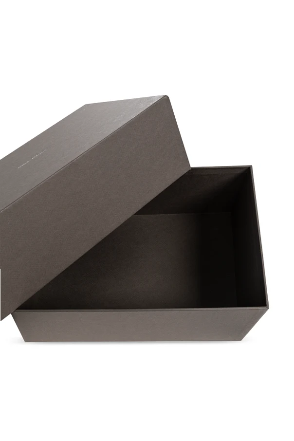 Pudełko wykonane zostało z wysokogatunkowego kartonu o lekko ziarnistej, matowej teksturze , co nadaje całości niezwykle ekskluzywnego wyrazu. Unikatowa szarość harmonizuje z subtelnością projektu, a jedyne zdobienie stanowi drobne, srebrne lub białe logo „Rick Owens” na wieku, będące gwarancją oryginalności. Gładka powierzchnia pozbawiona tłoczeń spełnia oczekiwania koneserów nowoczesnego minimalizmu.