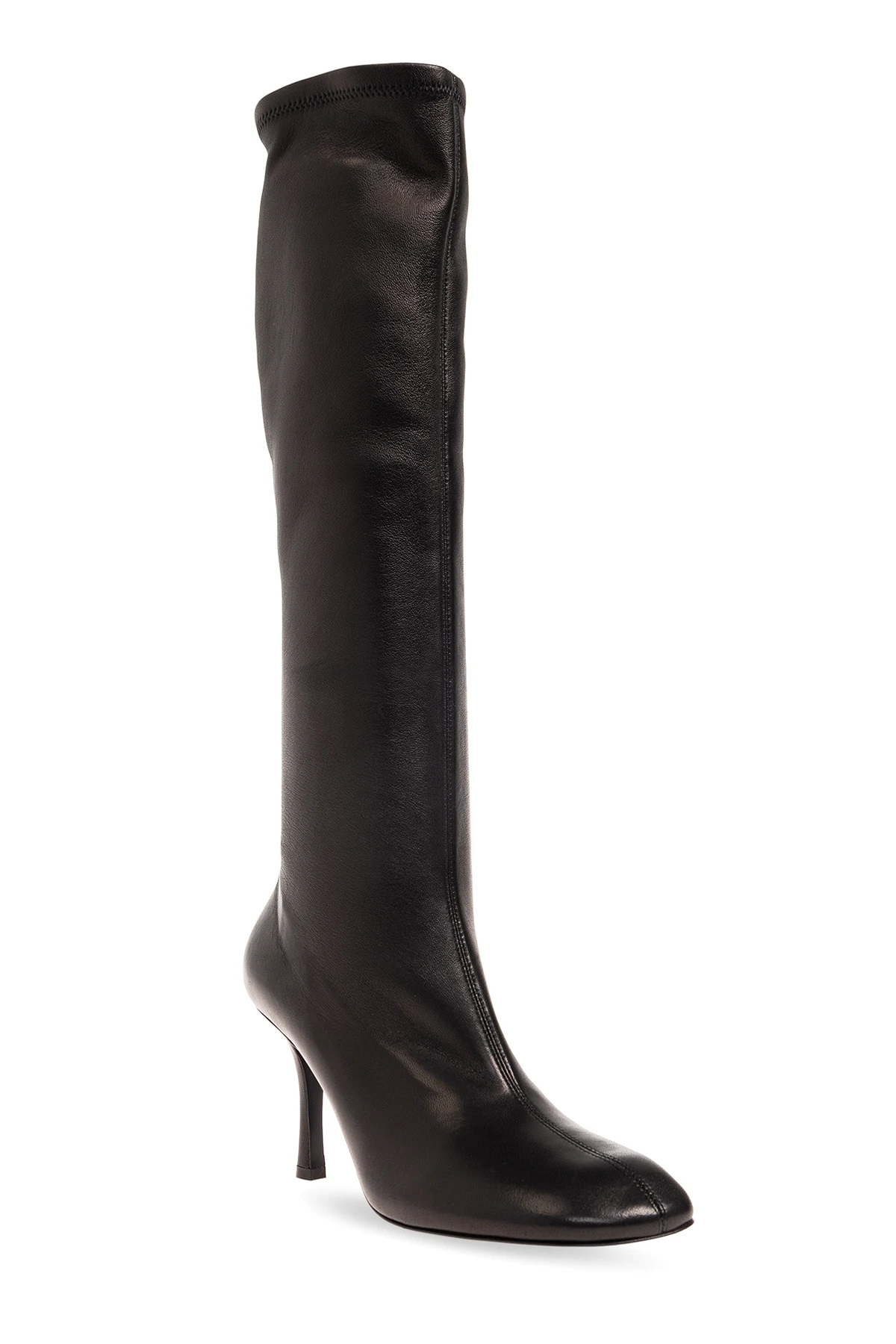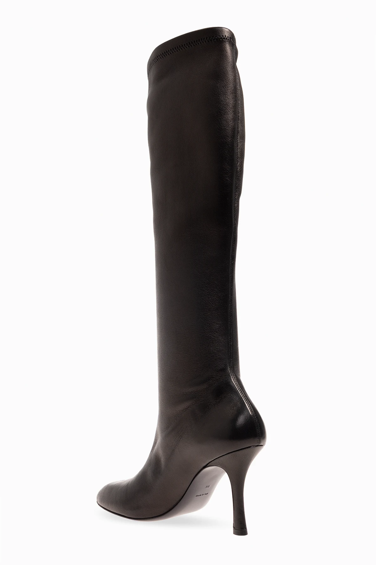 Czarne, wsuwane kozaki na obcasie, model ‘Baby’ Burberry. Wykonane z elastycznej skóry. Zaokrąglony nosek. Czarna, skórzana podeszwa.