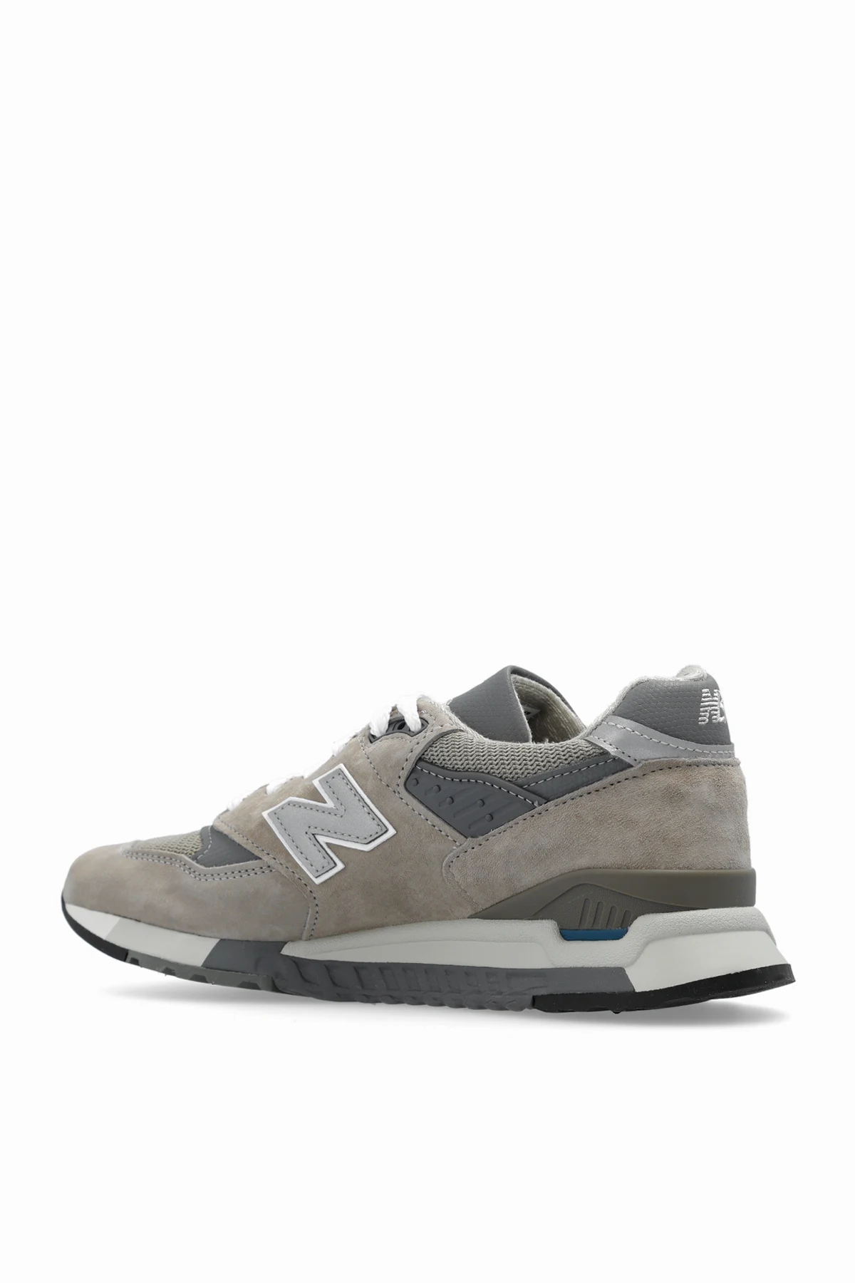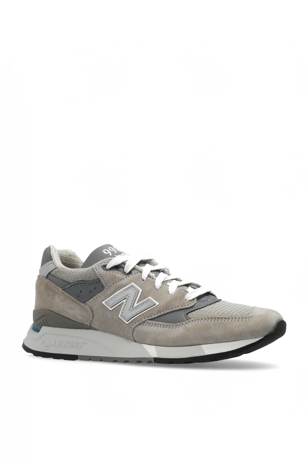 Szare, sznurowane buty sportowe, model ‘U998GR’ New Balance. Wykonane ze skóry i materiału. Ozdobione aplikacją z logo oraz odblaskowym elementem na zapiętku. Szaro-biała, gumowa podeszwa.
