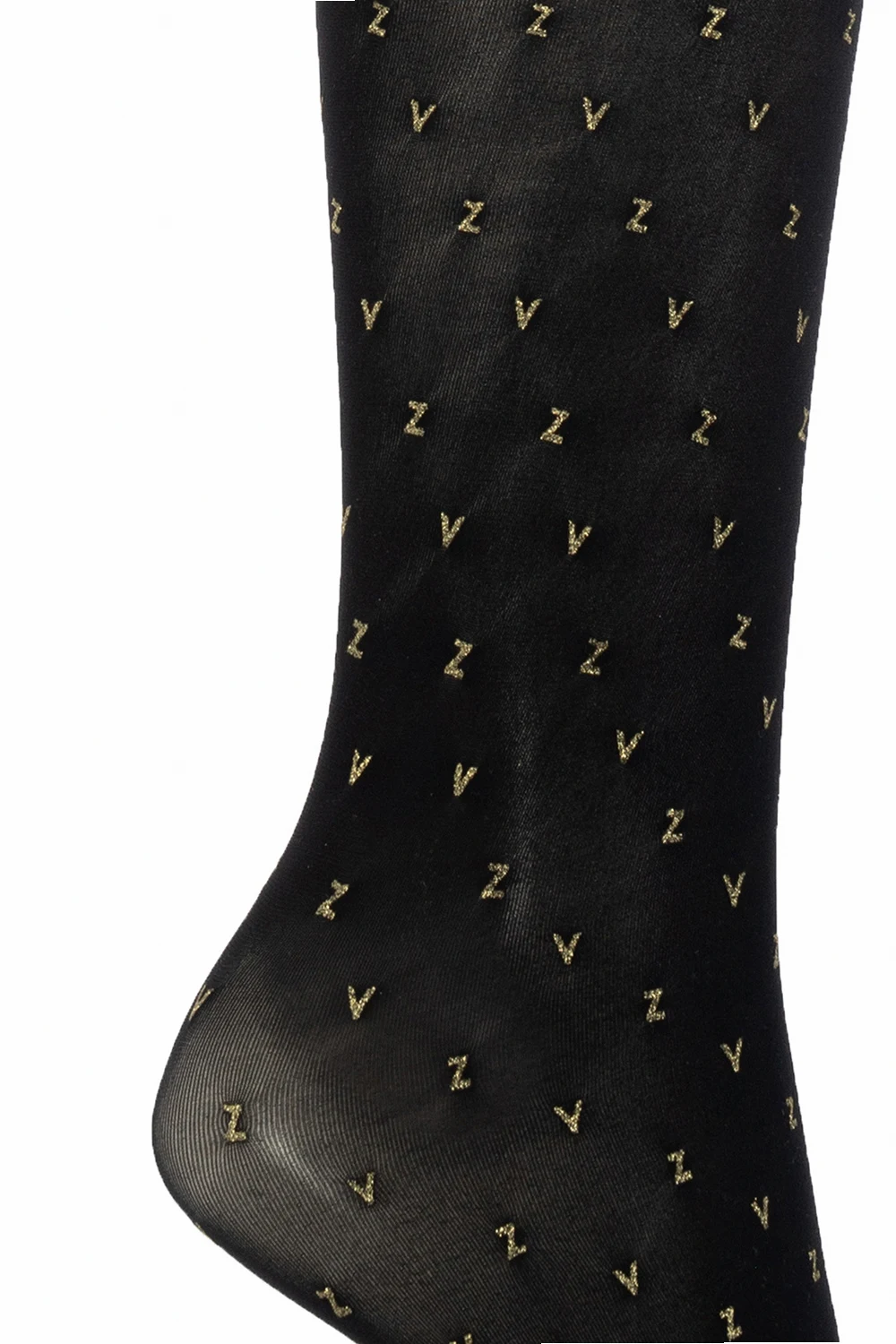Czarne rajstopy Zadig & Voltaire x Fogal. W pasie wszyta guma. Ozdobione logo w kolorze złotym.