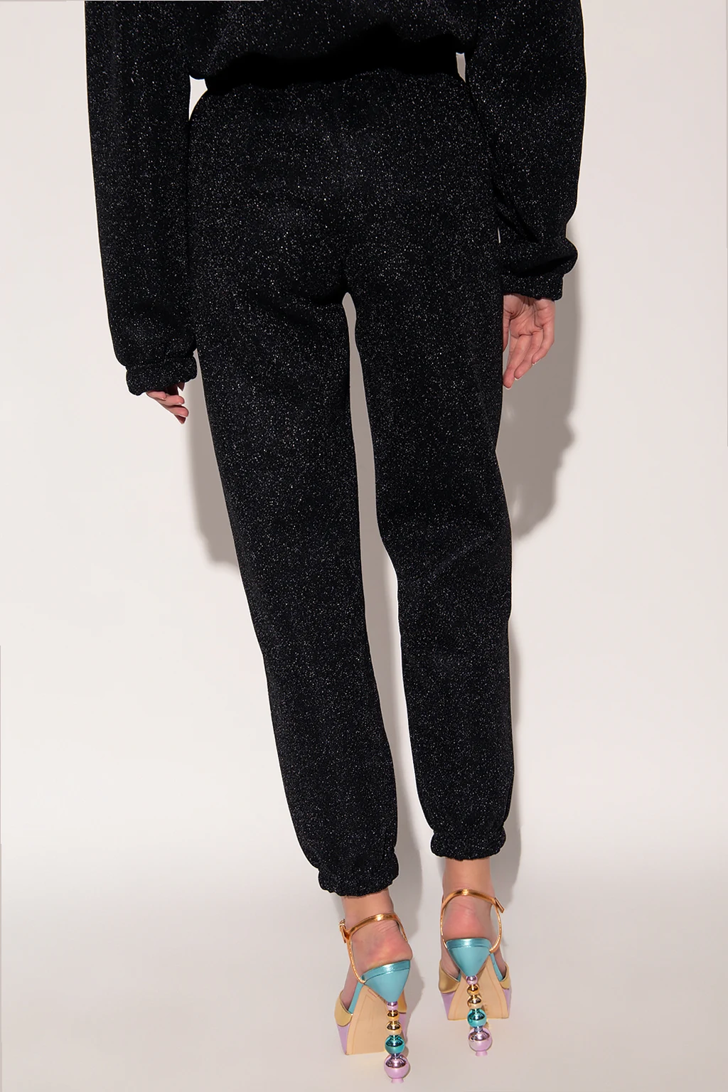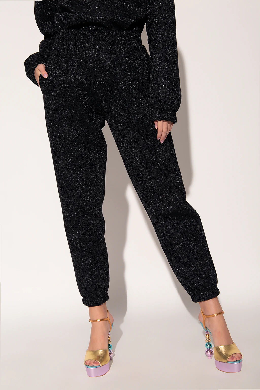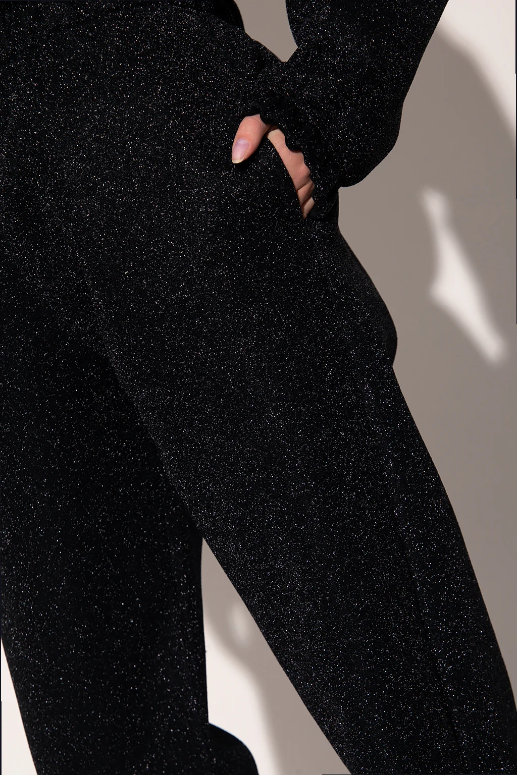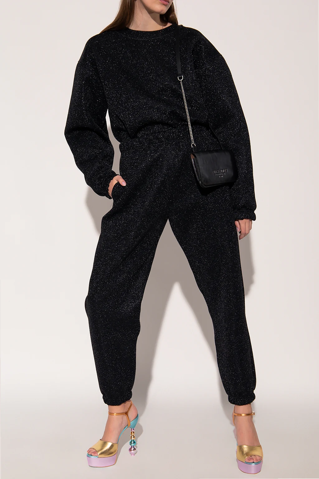 Czarne spodnie dresowe Oseree. Wykończone lureksową nicią. W pasie wszyta guma. Dwie wsuwane kieszenie. Nogawki zakończone ściągaczem. Bawełniana warstwa wewnętrzna.