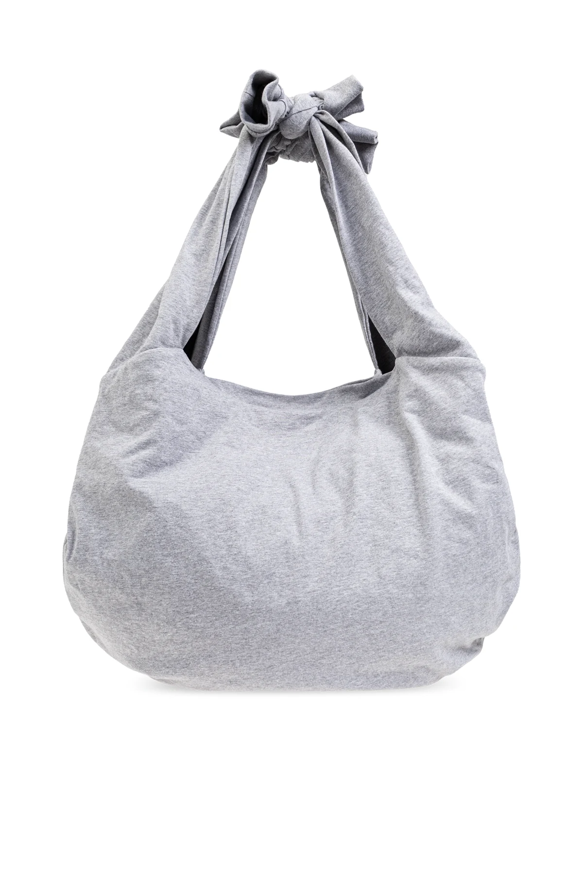Kształt i wzór: Klasyczny prostokątny kształt typu shopper oraz charakterystyczne supełkowe wiązanie na górze, pełniące funkcję uchwytu, nadają torbie unikalny charakter.