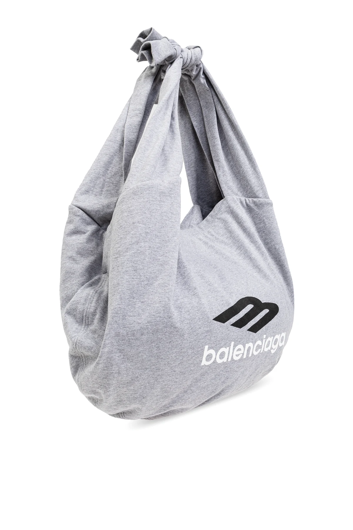 Logo i napisy: Na przodzie torby znajduje się wyraźne logo marki Balenciaga składające się z dużej, czarnej litery "B" oraz białego napisu "balenciaga".