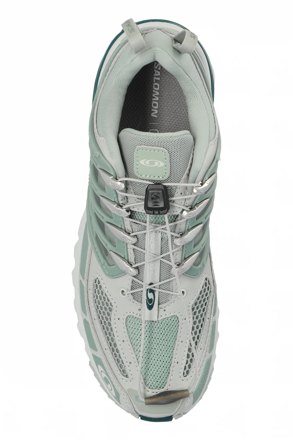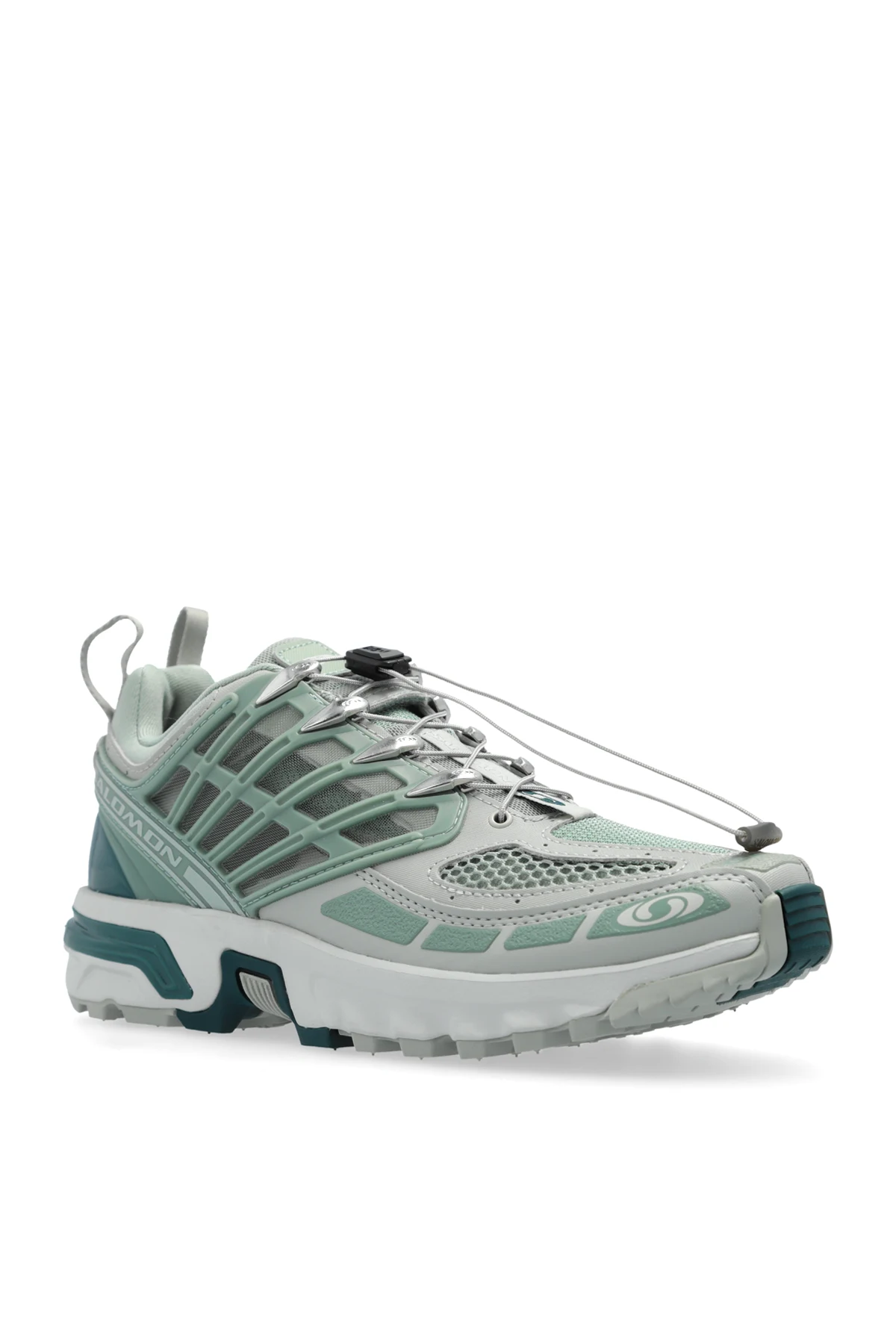 System szybkiego sznurowania z mechanizmem zaciskowym ułatwia zakładanie i zdejmowanie butów. Dodatkowe akcenty w kolorze miętowym i ciemnozielonym nadają im świeżego, stylowego wyglądu, podkreślonego przez delikatne logo i napisy producenta.