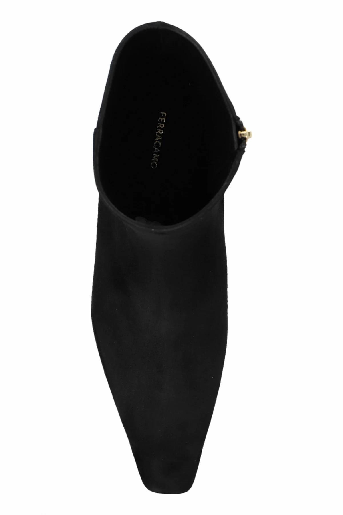 Materiał: Botki wykonane są z najwyższej jakości czarnej skóry cielęcej, która zapewnia trwałość i komfort użytkowania. Wnętrze buta zdobi subtelne logo "FERRAGAMO", podkreślające prestiżowy charakter produktu.