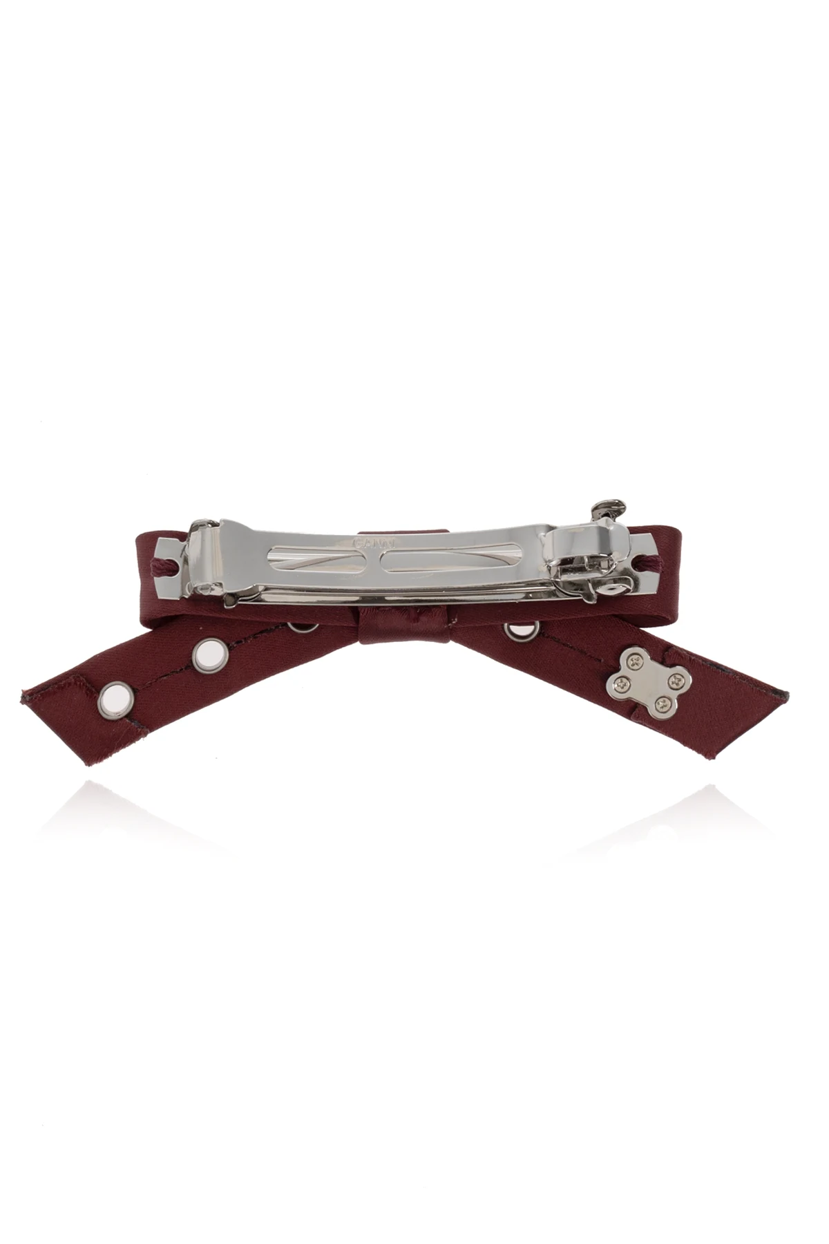 Spinka została zaprojektowana w kształcie kokardy, subtelnie ozdobionej metalowymi oczkami , co dodaje jej wyrafinowania. Na jednym z końców znajduje się elegancki metalowy emblemat , przypominający logo projektanta, co świadczy o jej unikatowości i dbałości o detale.