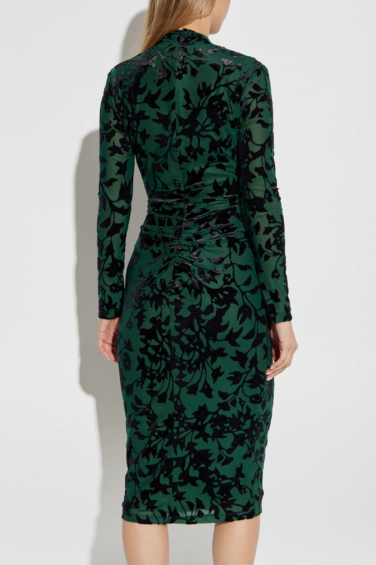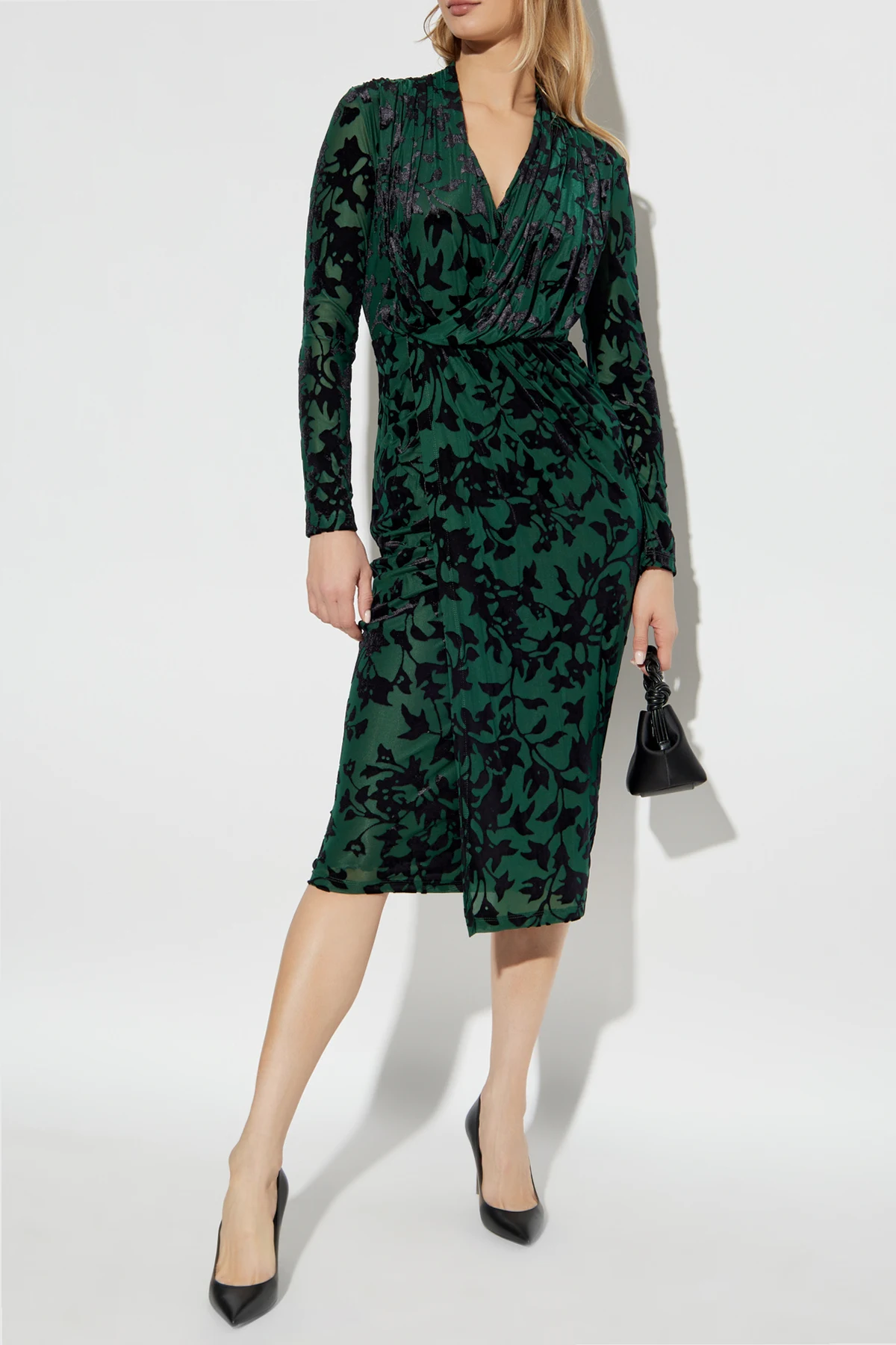 Sukienka Tamra to arcydzieło z ekskluzywnej kolekcji autorstwa Diane Von Furstenberg , która od lat rewolucjonizuje świat mody. Utrzymana w dominującej zieleni z subtelnym, czarnym kwiatowym wzorem, sukienka emanuje wyrazistością i elegancją.