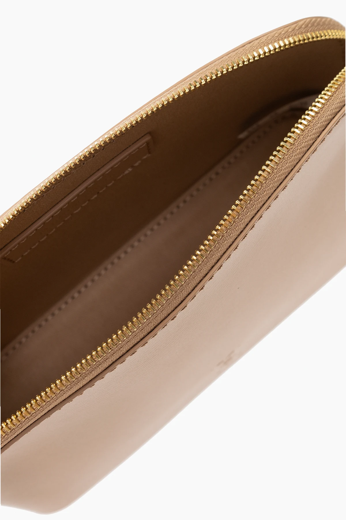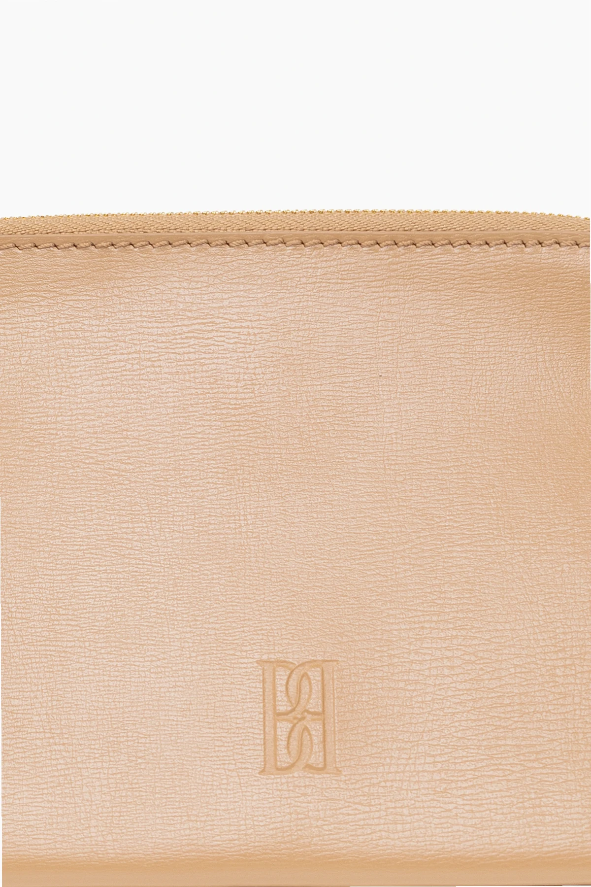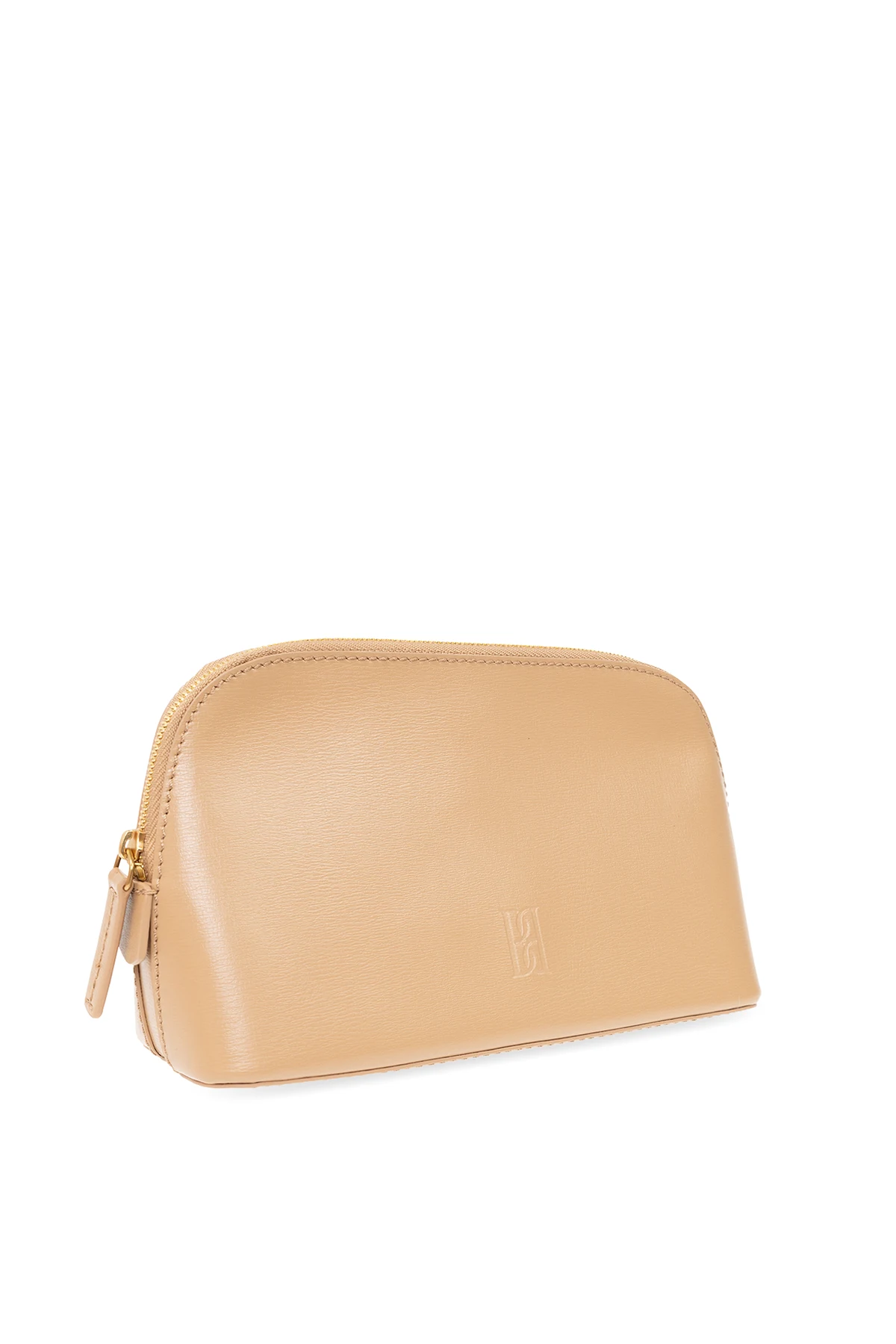 Beżowa kosmetyczka, model ‘Aya Small’ By Malene Birger. Wykonana ze skóry z recyklingu. Zamykana na zamek. Ozdobiona wytłoczonym logo. Wewnątrz komora. Metalowe wykończenie w kolorze złotym.