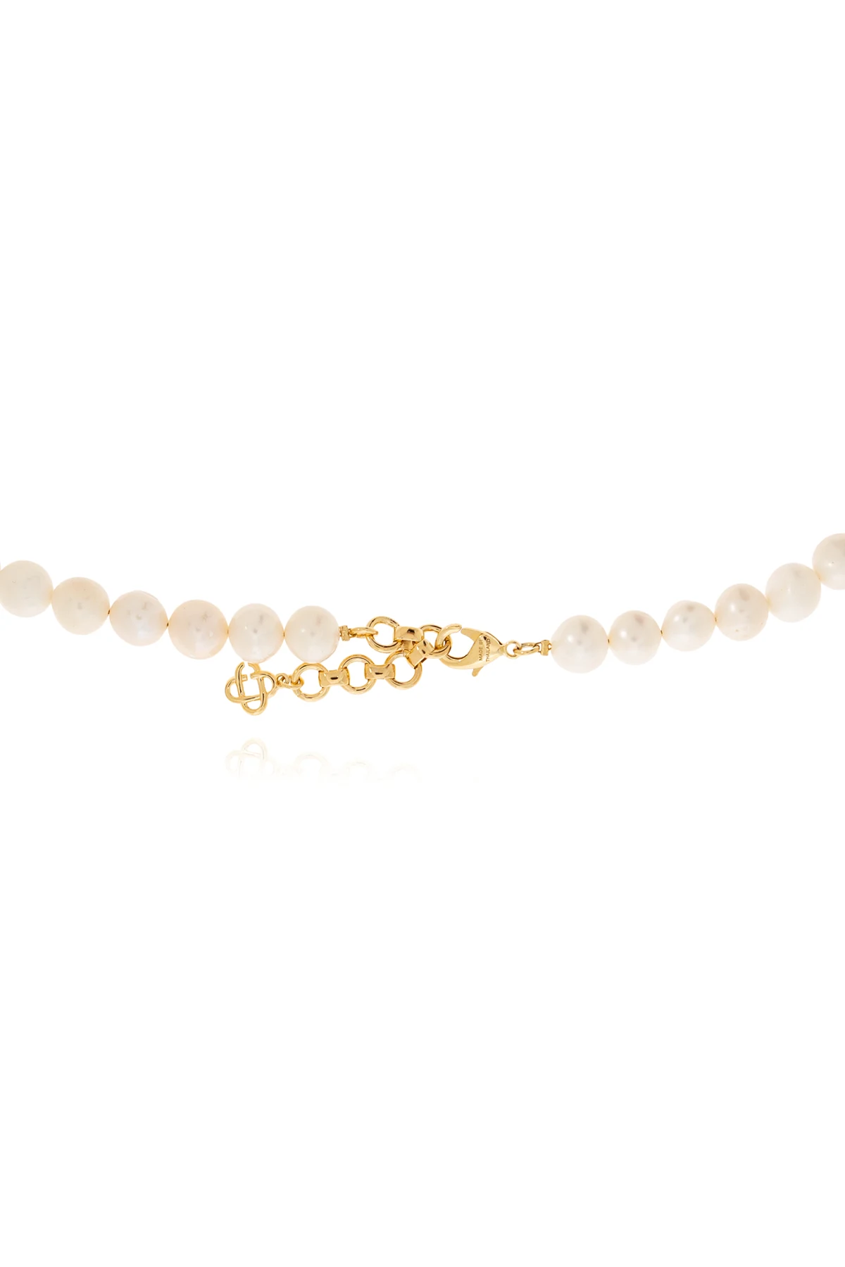 Przedstawiamy Naszyjnik z logo od renomowanej marki Casablanca, który stanowi kwintesencję elegancji i wyrafinowanego stylu. Wykonany z olśniewających białych pereł, naszyjnik emanuje klasycznym pięknem, które zostało subtelnie wzbogacone o nowoczesne detale w postaci złotych elementów.
