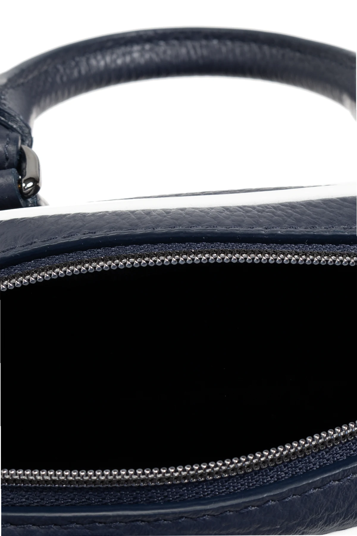 Torba ma półokrągły kształt z zaokrąglonymi krawędziami, co nadaje jej delikatności i elegancji. Wykonana z wysokiej jakości granatowej skóry o fakturze groszkowej , gwarantuje trwałość i luksusowy wygląd. Na przedniej stronie torby znajduje się duże, białe logo "DG" oraz napis "MILANO", które dodają jej charakterystycznego wyglądu.