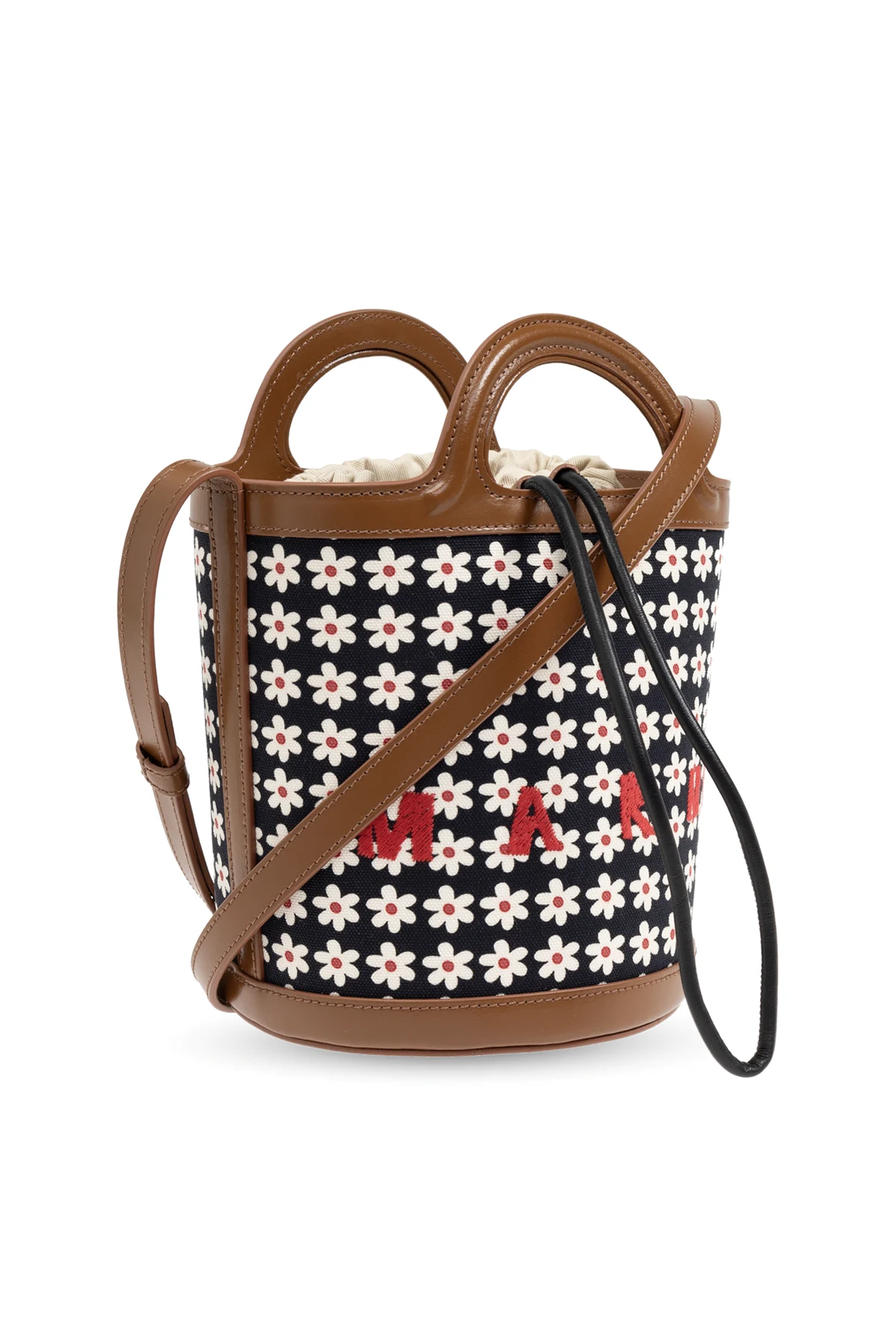 Zachwycająca swoją oryginalnością, torba na ramię 'Tropicalia Small' od renomowanej marki Marni , to kwintesencja stylu i funkcjonalności. Projekt typu "bucket" charakteryzuje się unikatowym kształtem wiaderka z zaokrąglonym dnem i otwartą górą, co nadaje jej wyjątkowej estetyki.
