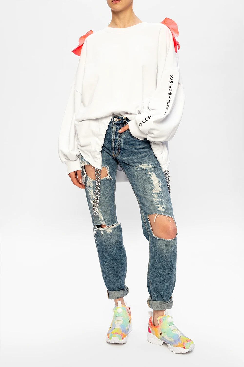 Kolorowe buty sportowe ‘Instapump Fury’ Reebok. Ozdobione wyszytym logo w kolorze białym oraz transparentnymi wstawkami. Biała, gumowa podeszwa. Buty pochodzą z kolekcji- ‘All types of love’, będącej częścią kampanii ‘Proud Notes’, która wspiera społeczność LGBT+.