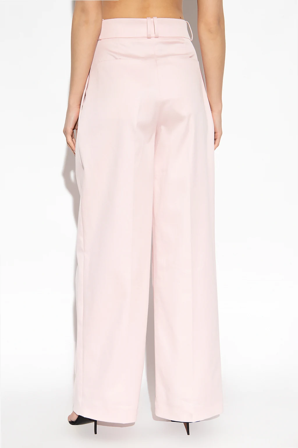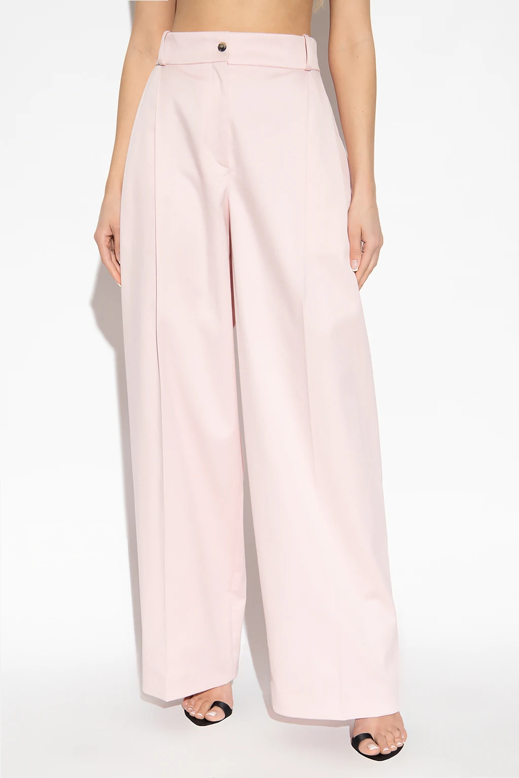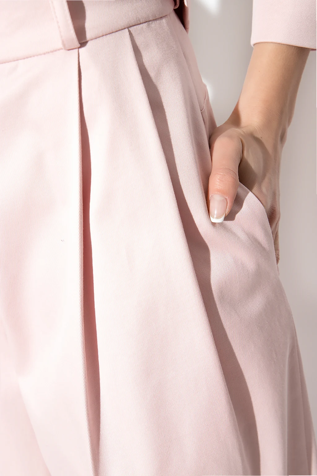 Różowe spodnie w kant, model ‘Arda’ The Mannei. Wykonane z bawełny. Zapinane na zamek i guzik. Z przodu dekoracyjne zakładki. Cztery wsuwane kieszenie. Długie nogawki o luźnym kroju.