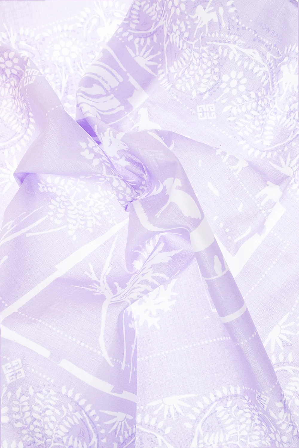 Fioletowa, bawełniana apaszka Givenchy. Ozdobiona nadrukowanym białym wzorem z wplecionym motywem ‘4G’.