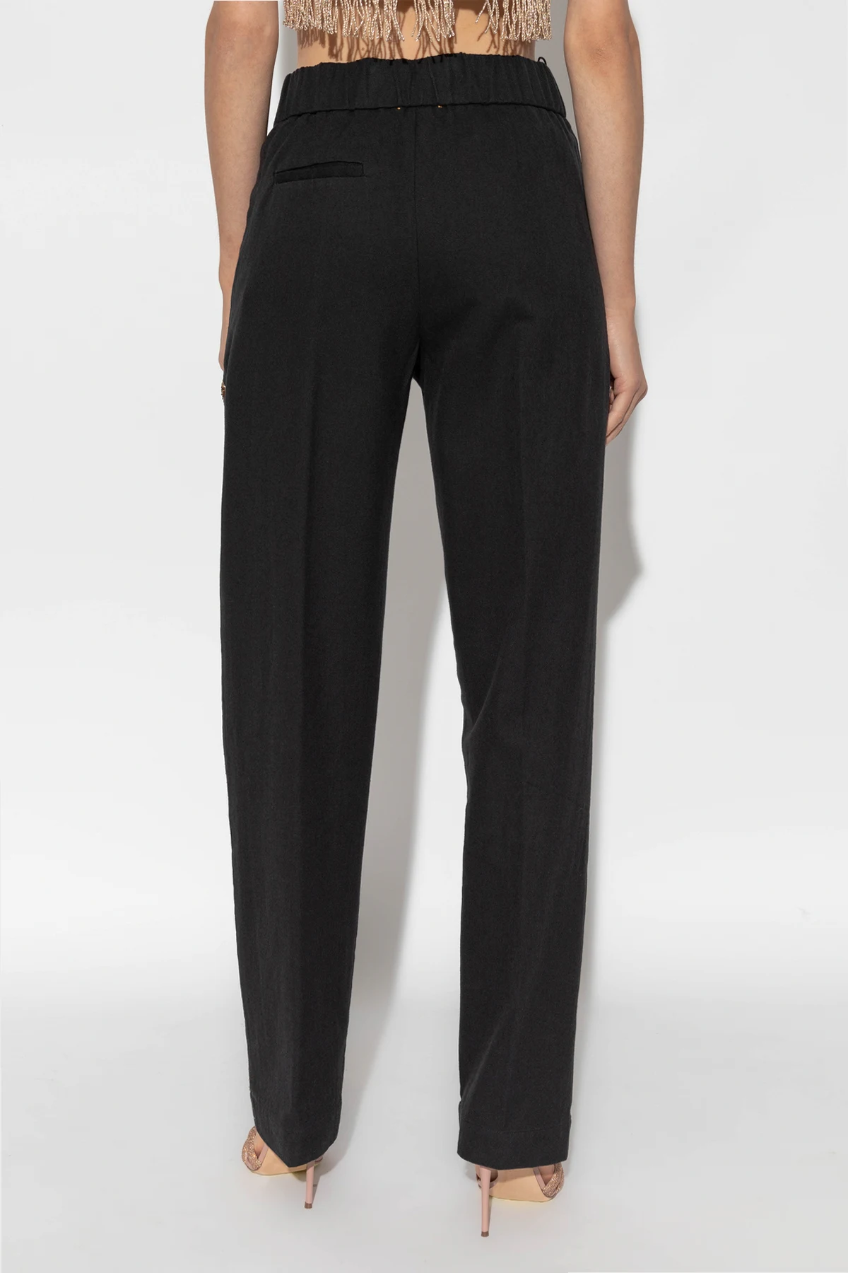 Przedstawiamy Państwu Spodnie z połyskującymi aplikacjami z ekskluzywnej kolekcji marki forte_forte, która od 2002 roku urzeka swoją niepowtarzalną estetyką i emocjonalnym podejściem do projektowania. Te czarne spodnie są kwintesencją elegancji i funkcjonalności, łącząc klasyczny krój z nowoczesnymi detalami.