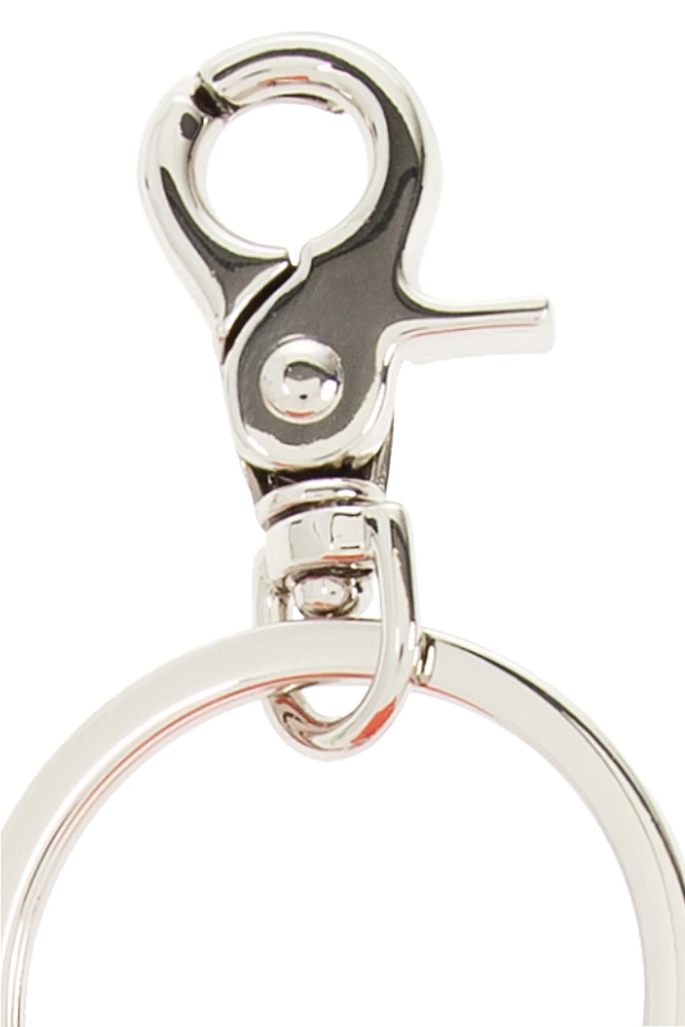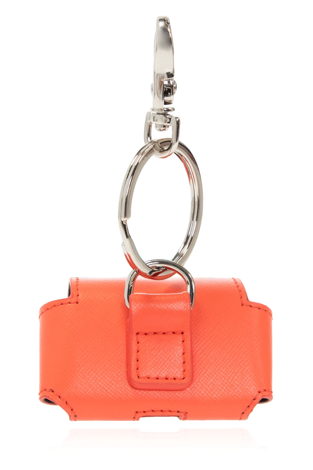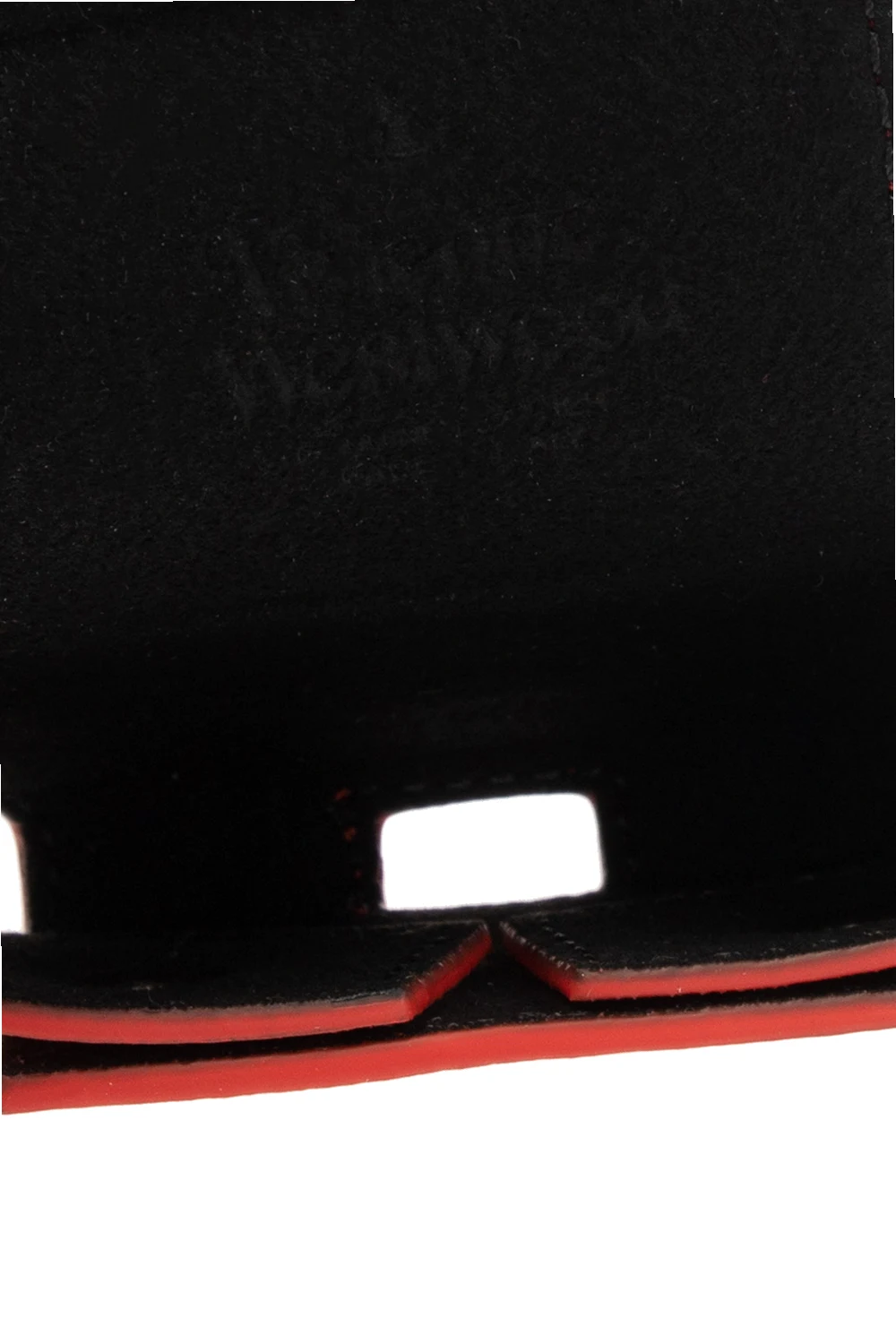 Czerwone etui na AirPod Vivienne Westwood. Wykonane ze skóry. Zamykane na zatrzask. Ozdobiona aplikacją z logo. Dołączony brelok wykończony karabińczykiem.