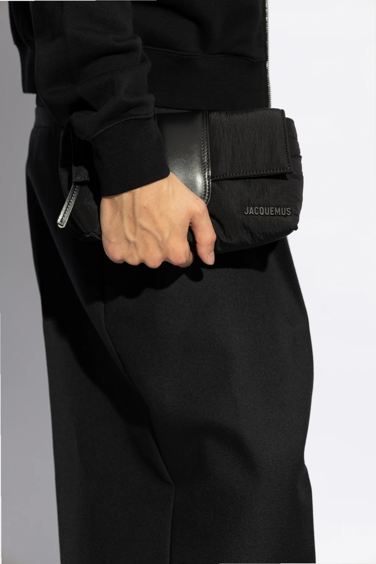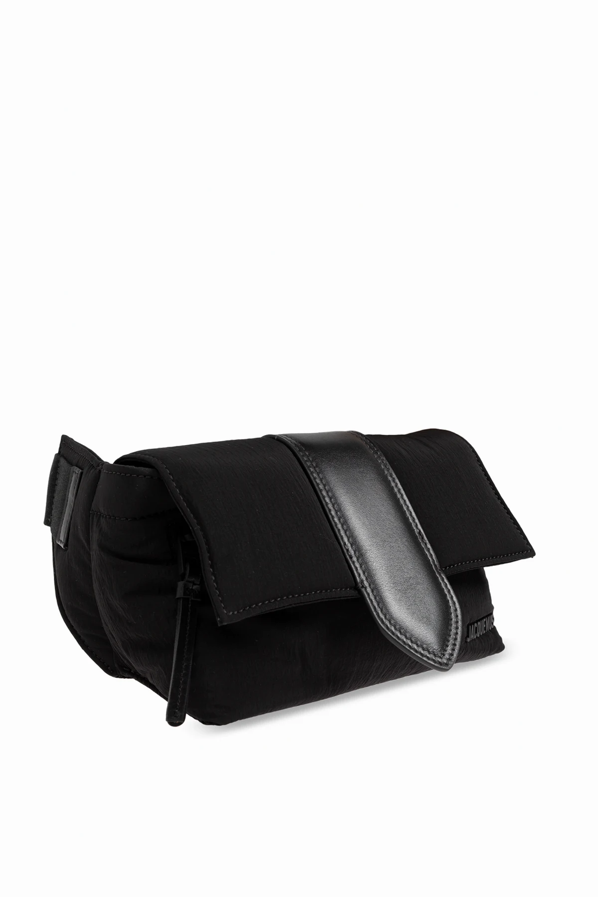 Na przedniej części torby, w dolnym prawym rogu, subtelnie wytłoczone logo "JACQUEMUS" dodaje klasy bez nadmiernej ostentacji. Szeroki pasek umożliwia noszenie torby zarówno na biodrze, jak i przez ramię, co zwiększa jej funkcjonalność. Wewnątrz torby znajduje się przestronna komora oraz dodatkowa kieszeń zapinana na suwak, co pozwala na doskonałą organizację przechowywanych przedmiotów. Klapa zamykana jest na magnetyczne zapięcie, co ułatwia szybki dostęp do wnętrza torby.