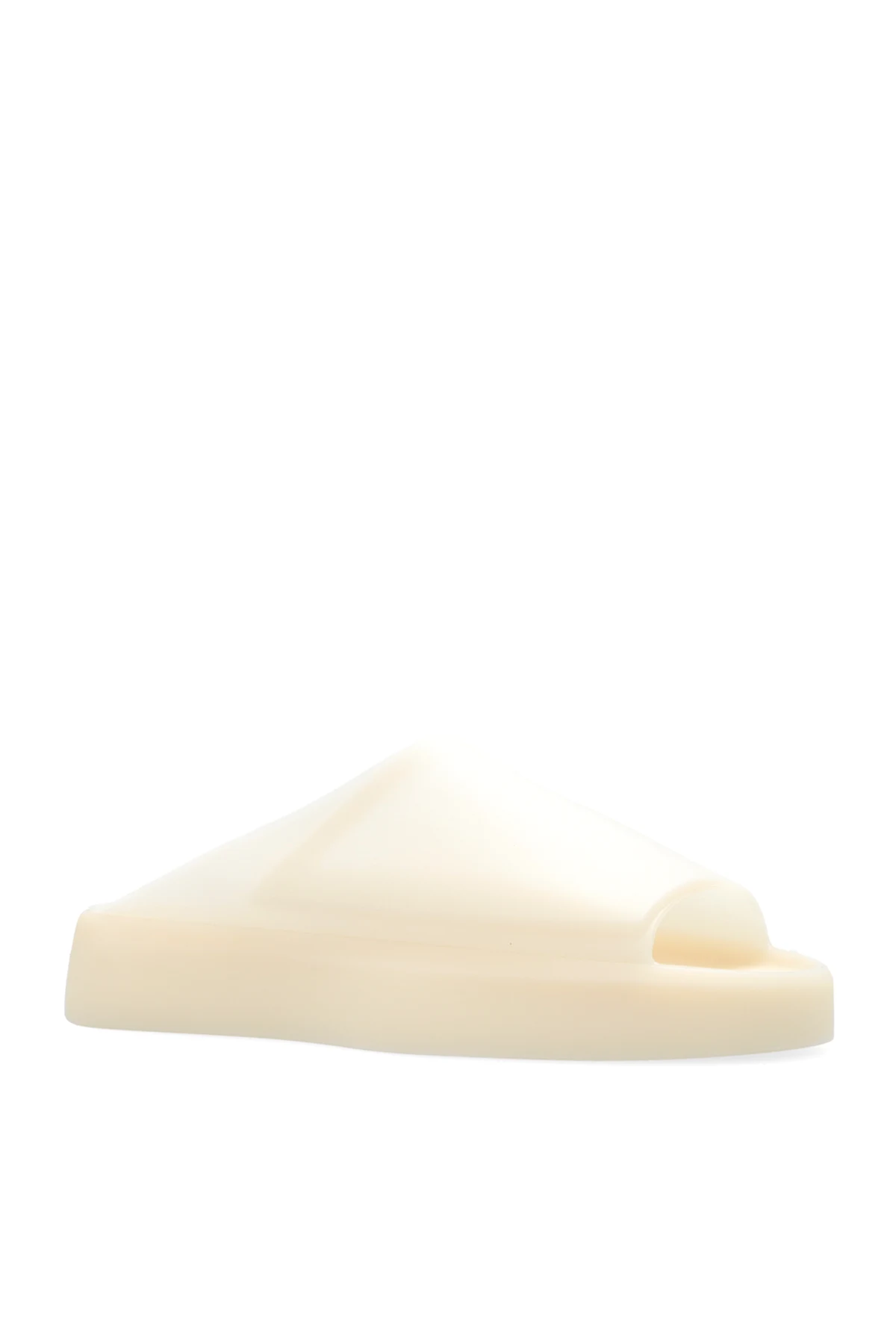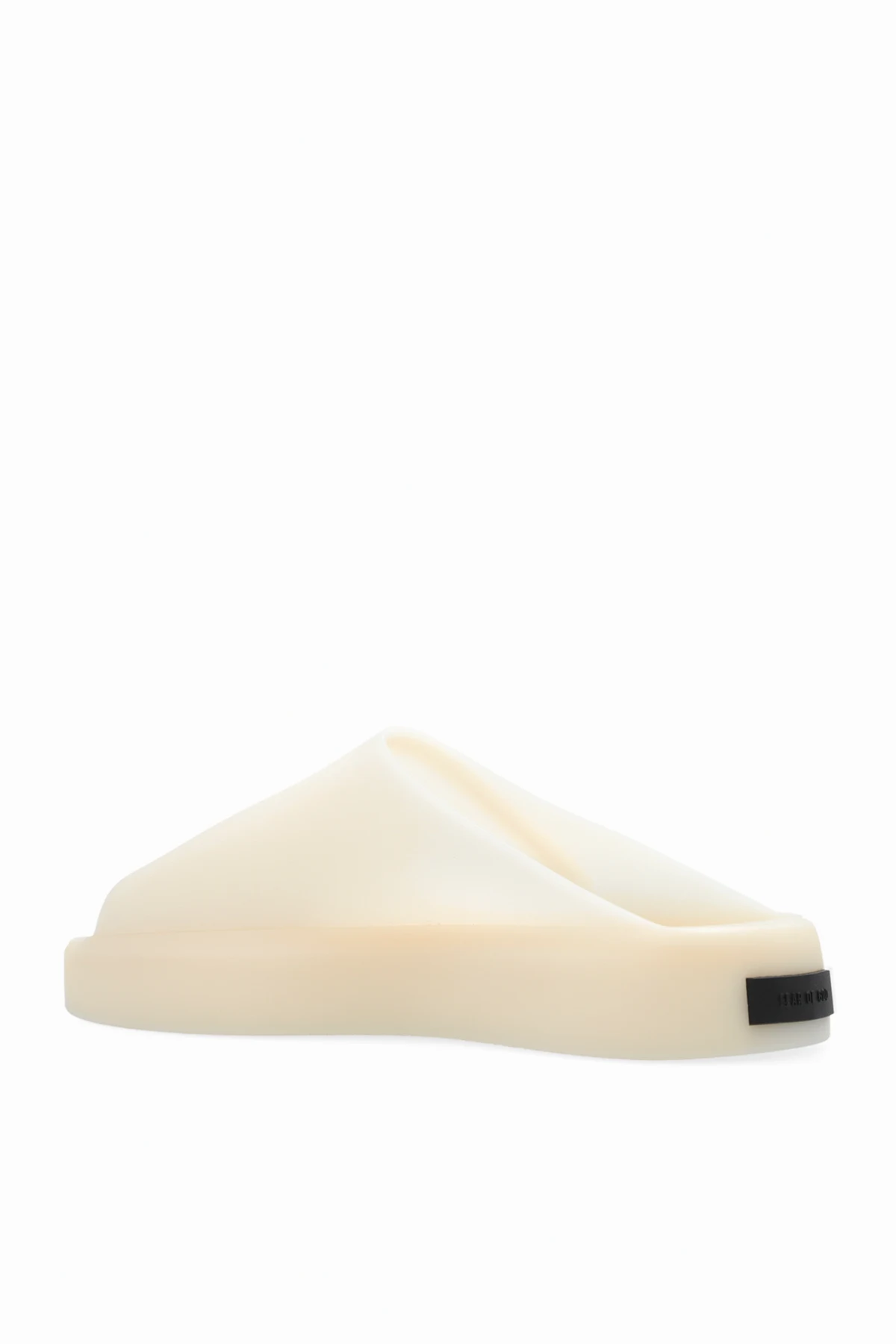 Kremowe gumowe klapki ‘Los Feliz’ z ekskluzywnej kolekcji marki Fear Of God to kwintesencja nowoczesnej elegancji oraz funkcjonalności. Te minimalistyczne sandały typu slide, wsuwane bez zapięć, wykonane są w całości z wysokiej jakości gumy, co zapewnia im jednolitą, matową powierzchnię oraz wybitną wodoodporność.
