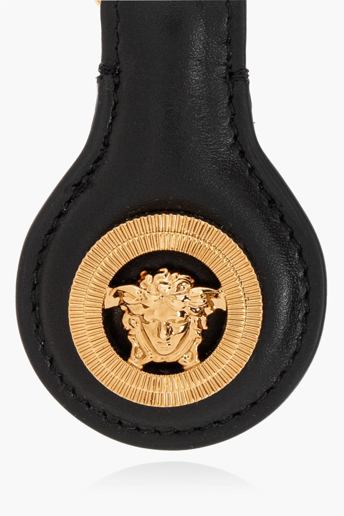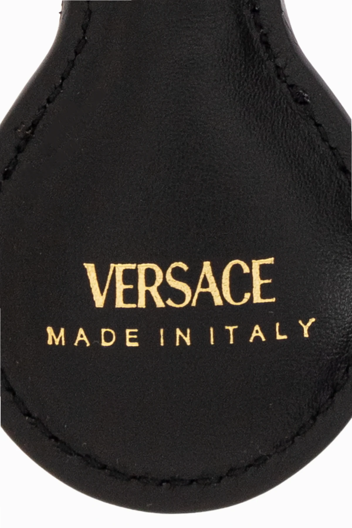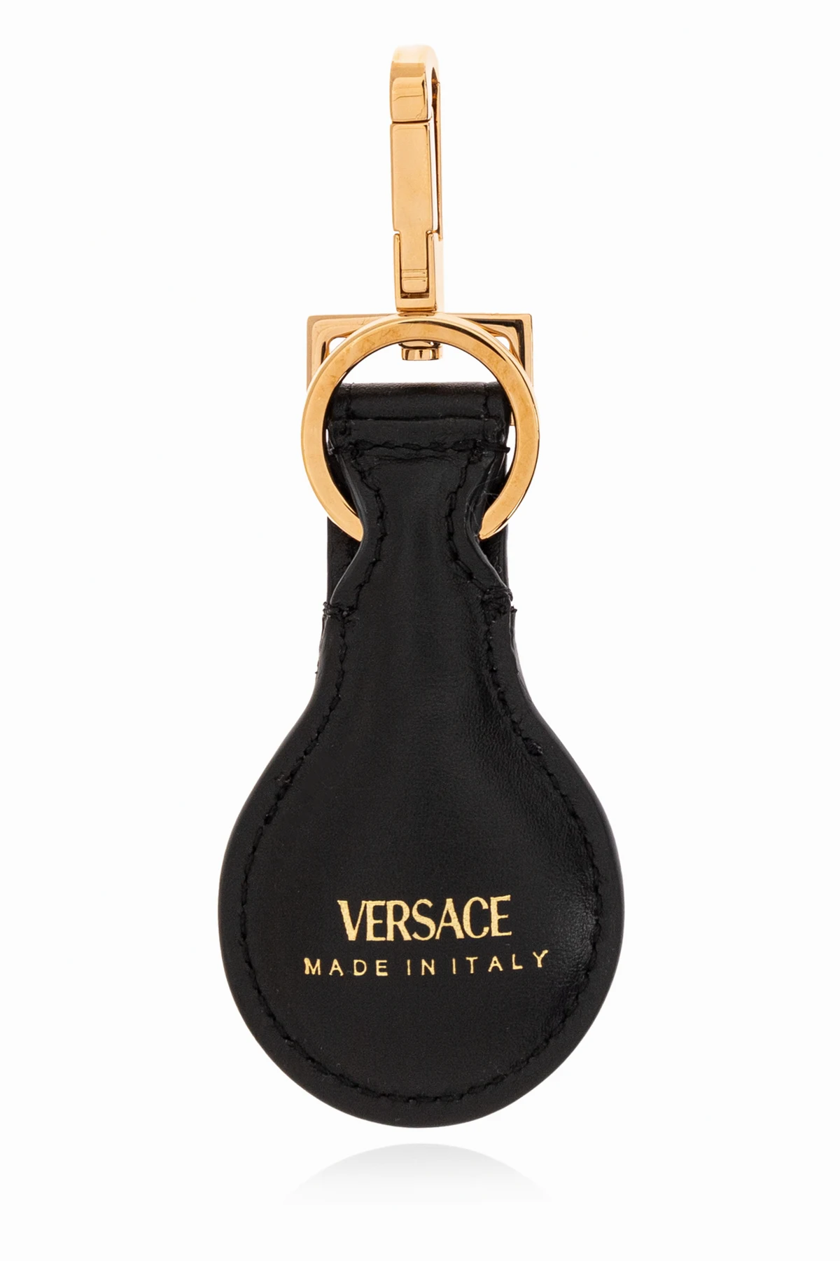 Na odwrocie breloka widnieje złote logo "VERSACE" oraz napis "MADE IN ITALY", co świadczy o najwyższej jakości wykonania i podkreśla ekskluzywność produktu. Kolorystyka łączy czerń z akcentami złota, tworząc harmonię luksusu i klasyki. Ten brelok to idealny wybór dla osób, które cenią sobie luksusowe detale i wyrafinowany styl.