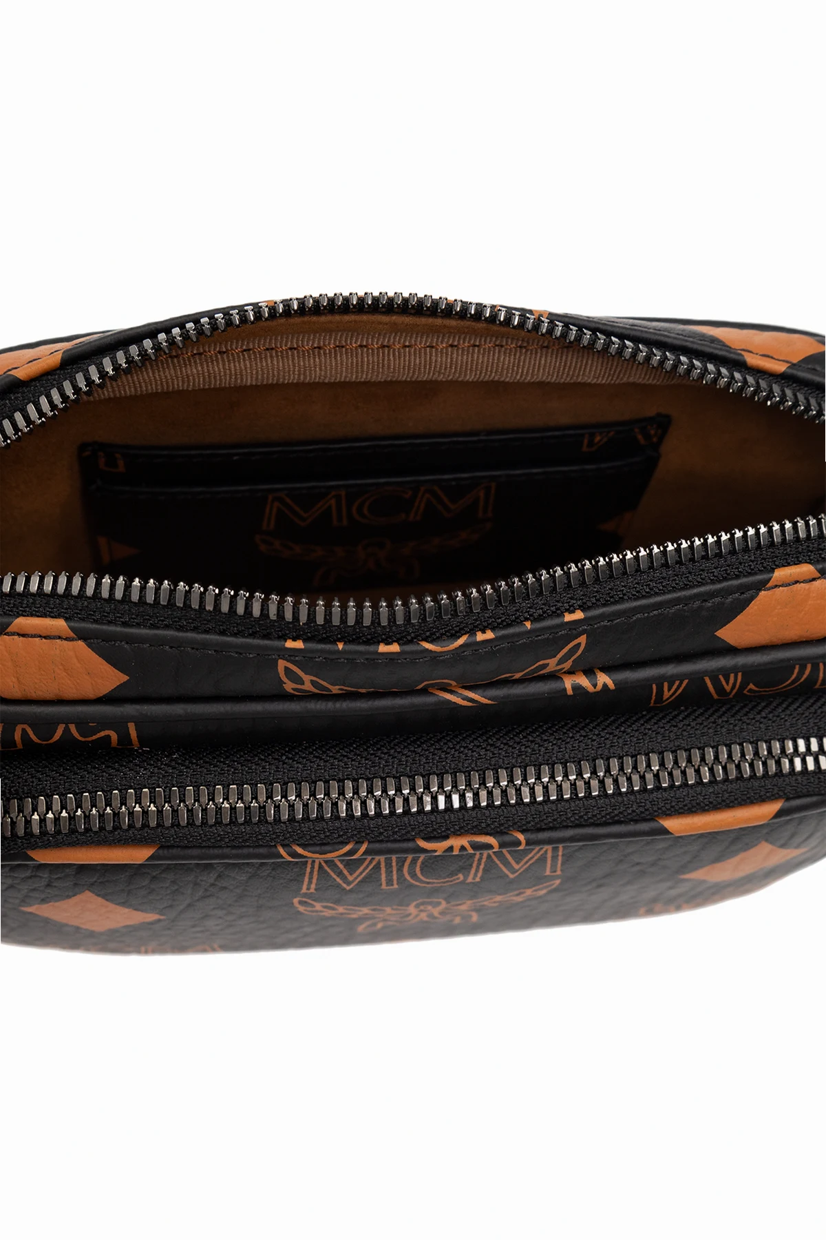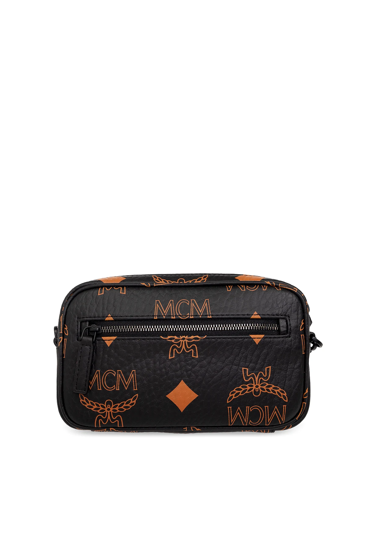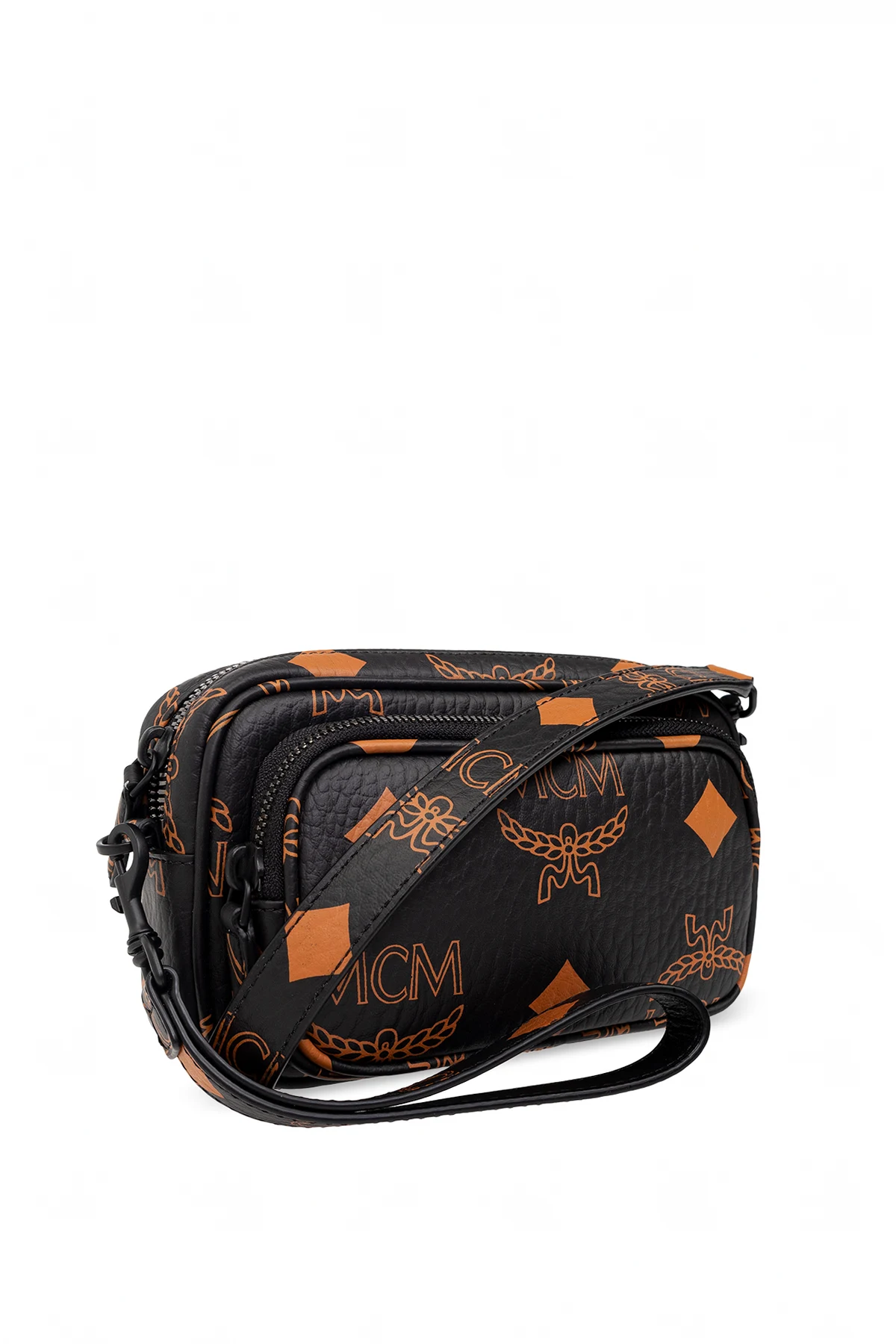 Czarna torba na ramię, model ‘Arem Mini’ MCM. Wykonana z charakterystycznego płótna powlekanego ozdobionego wzorem z monogramem ‘Visetos’ w kolorze brązowym. Wykończona skórą. Zamykana na zamek. Z przodu i z tyłu kieszeń zamykana na zamek. Odpinany opasek na nadgarstek i długi, regulowany pasek. Wewnątrz komora i dwa miejsca na karty.