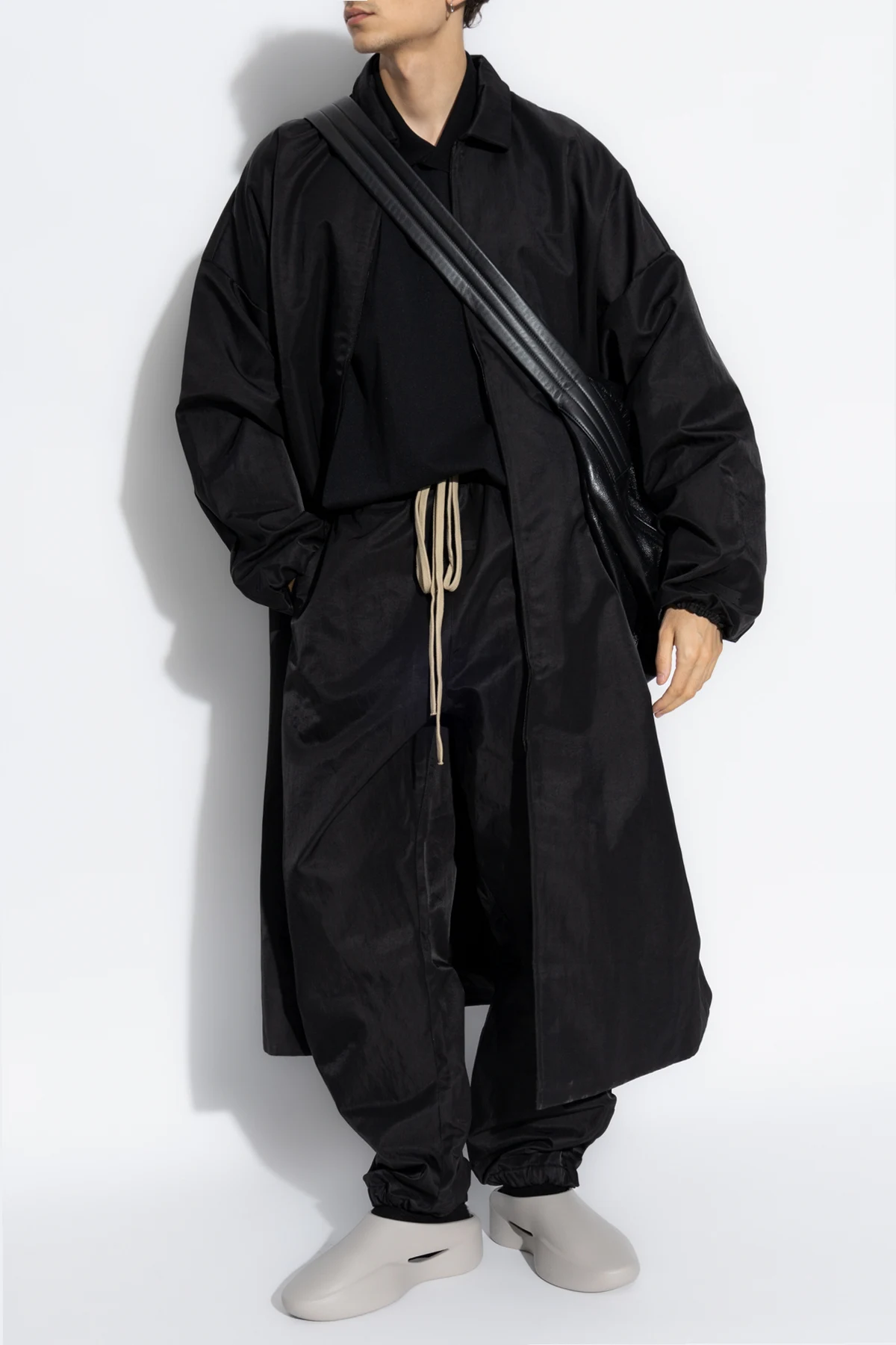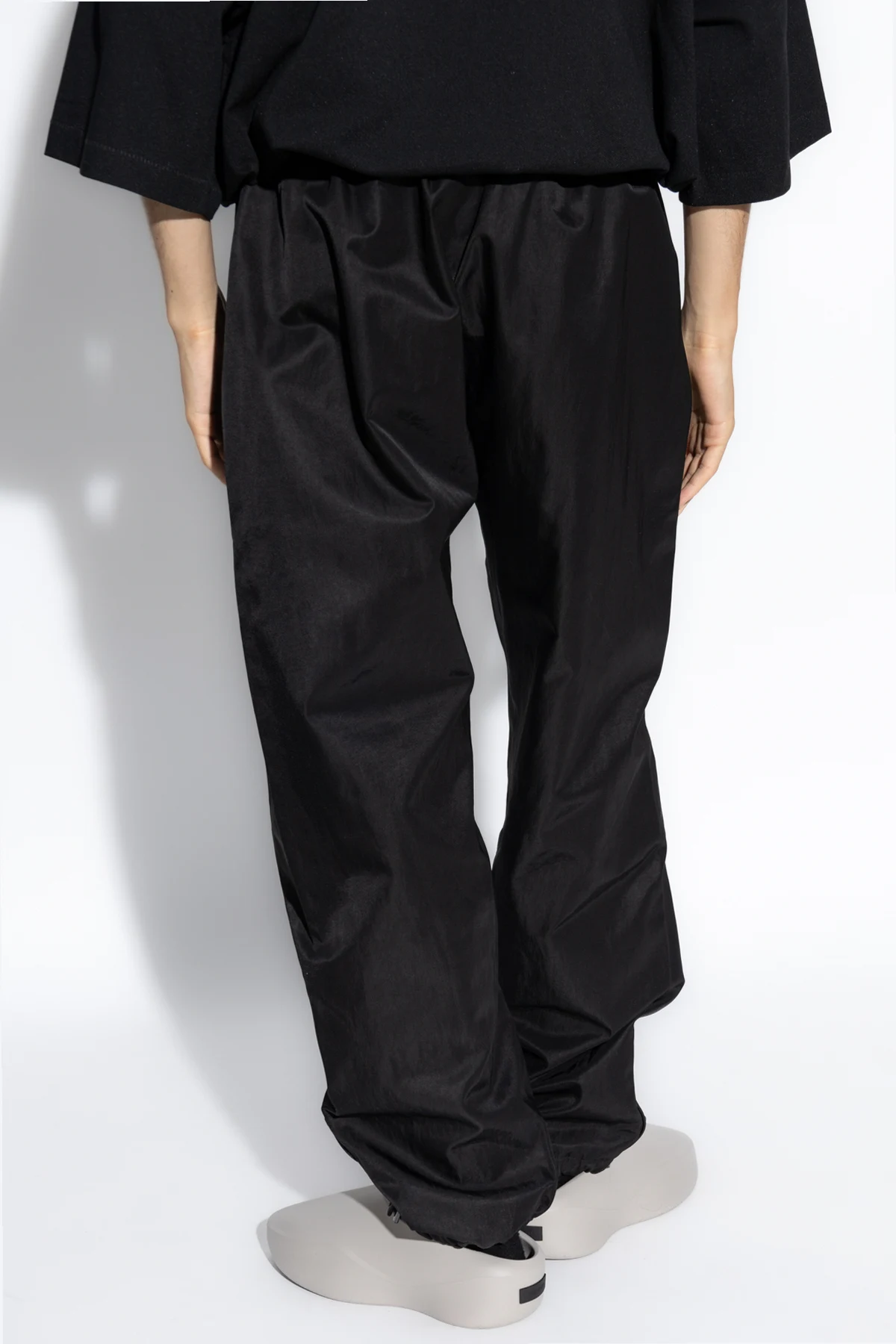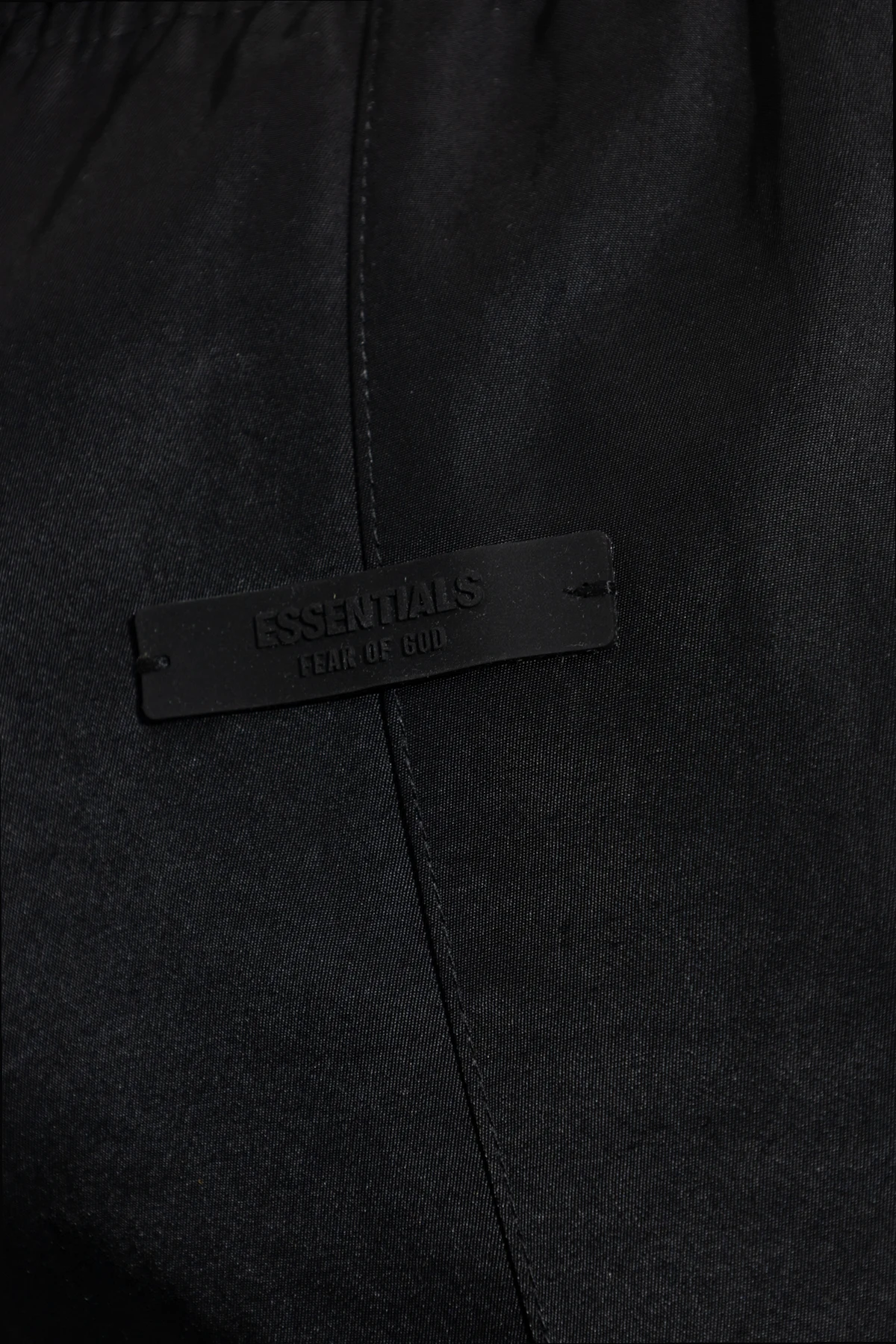 Przedstawiamy Spodnie z logo z ekskluzywnej kolekcji Fear of God Essentials . Te casualowe spodnie dla mężczyzn łączą w sobie elegancję i nowoczesny styl, idealne na każdą okazję. Wykonane z lekkiego, syntetycznego materiału, który jest zarówno wodoodporny, jak i przeciwwietrzny, oferują komfort i funkcjonalność.