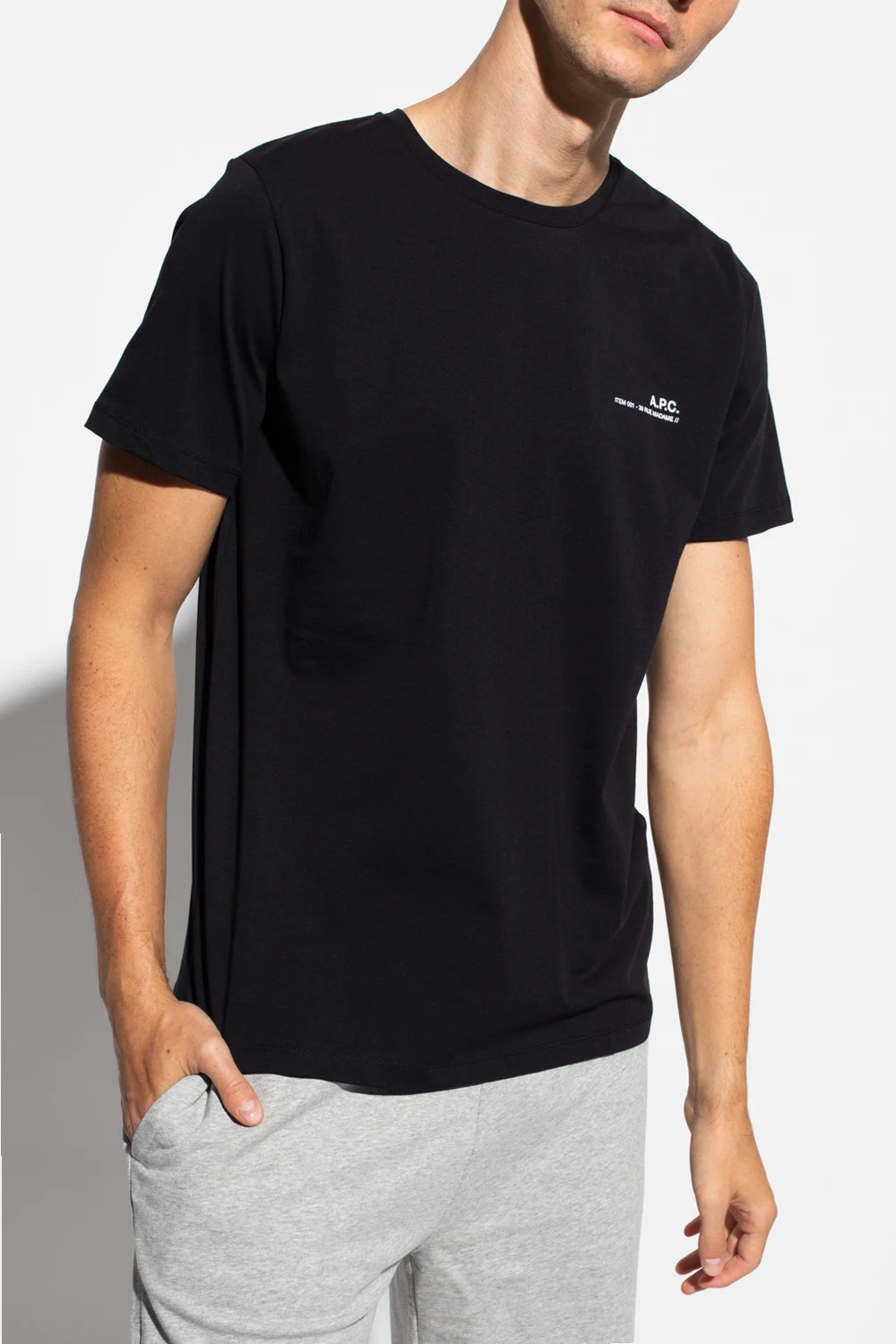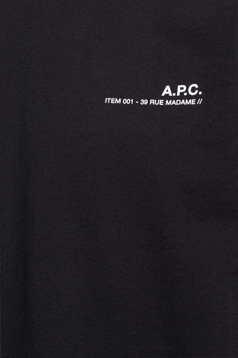 Czarny, bawełniany t-shirt A.P.C. Z przodu ozdobiony nadrukowanym białym logo. Okrągły dekolt. Krótkie rękawy.