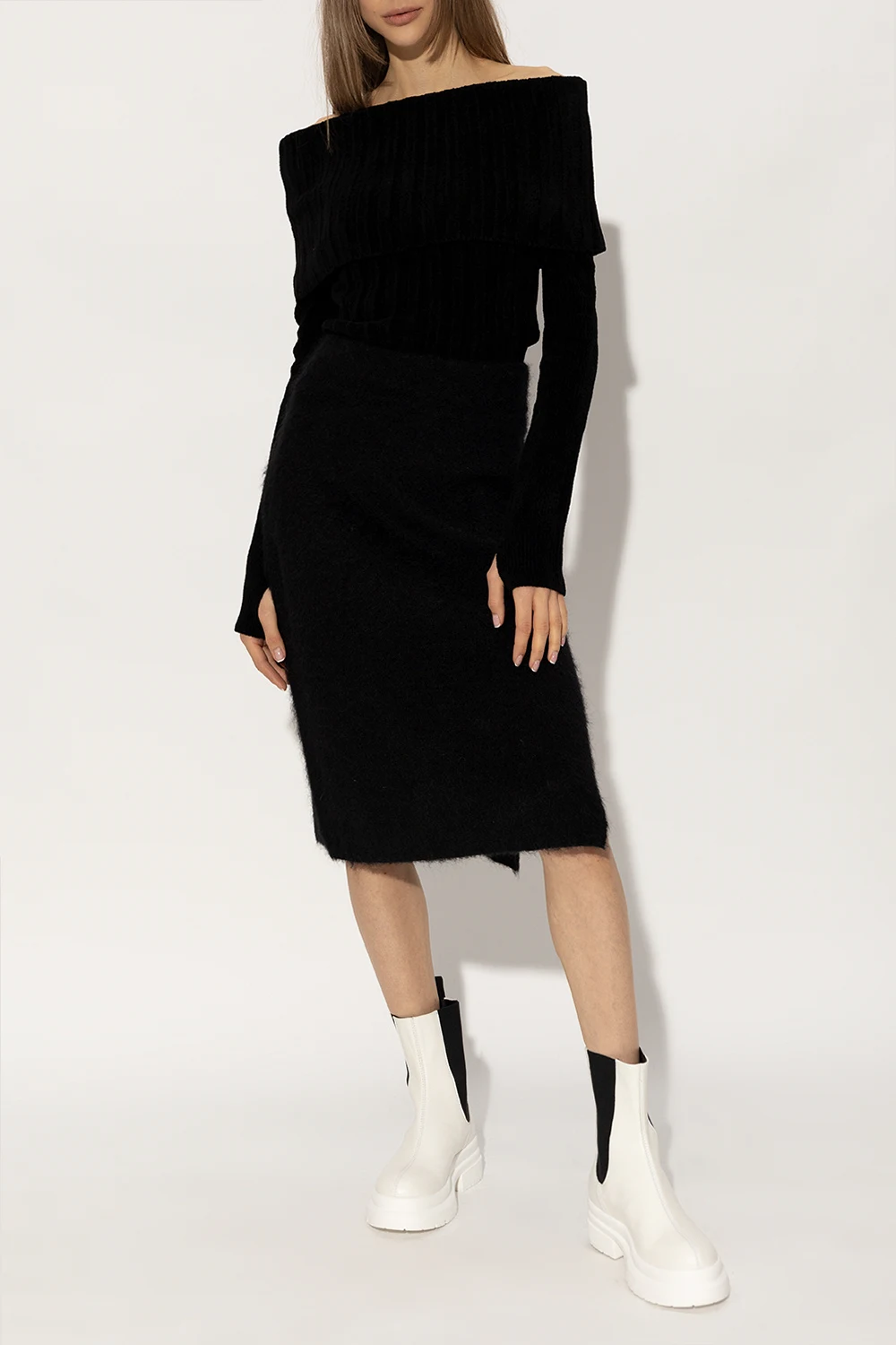 Biało-czarne sztyblety JW Anderson. Wykonane z gładkiej skóry. Po bokach wszyta taśma elastyczna. Z tyłu czarna, materiałowa wstawka z nadrukowanym białym logo. Biała, gumowa podeszwa.