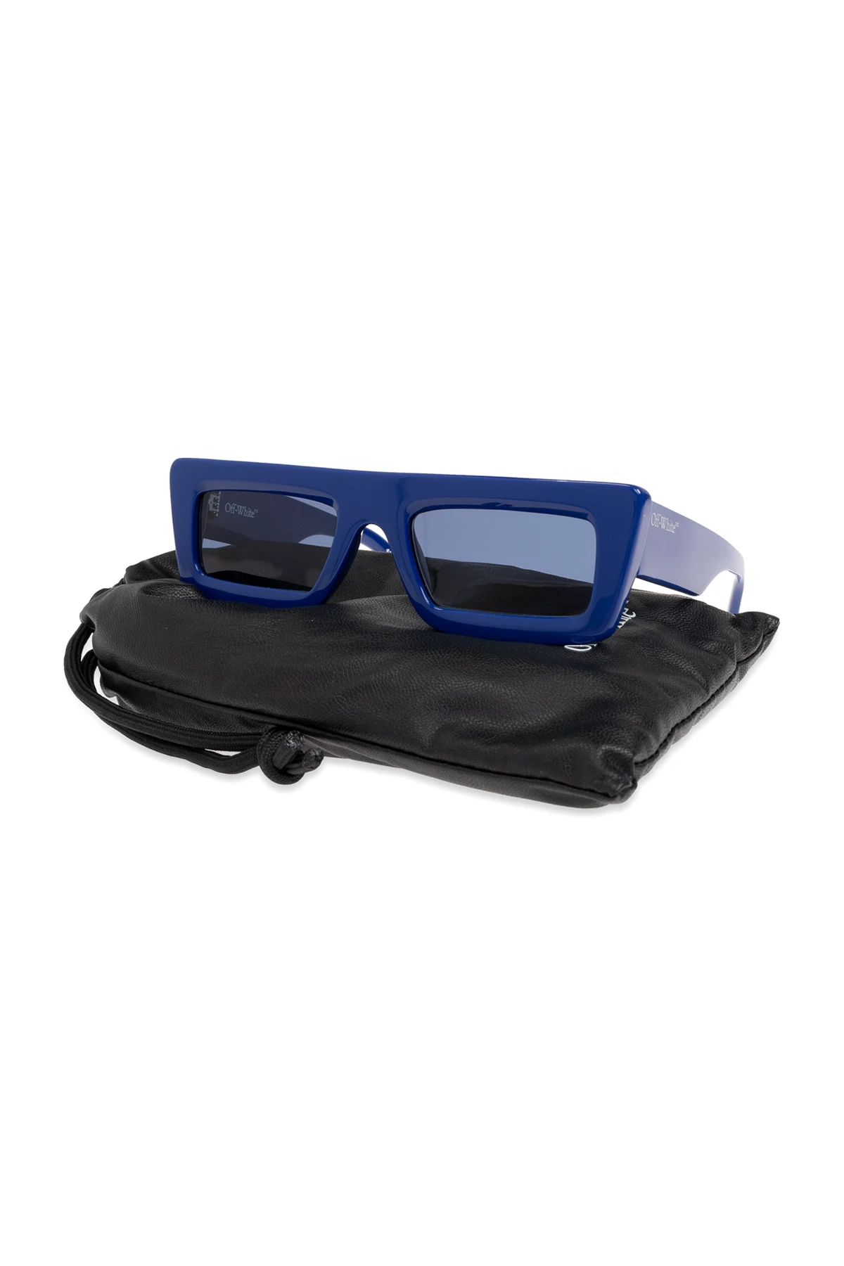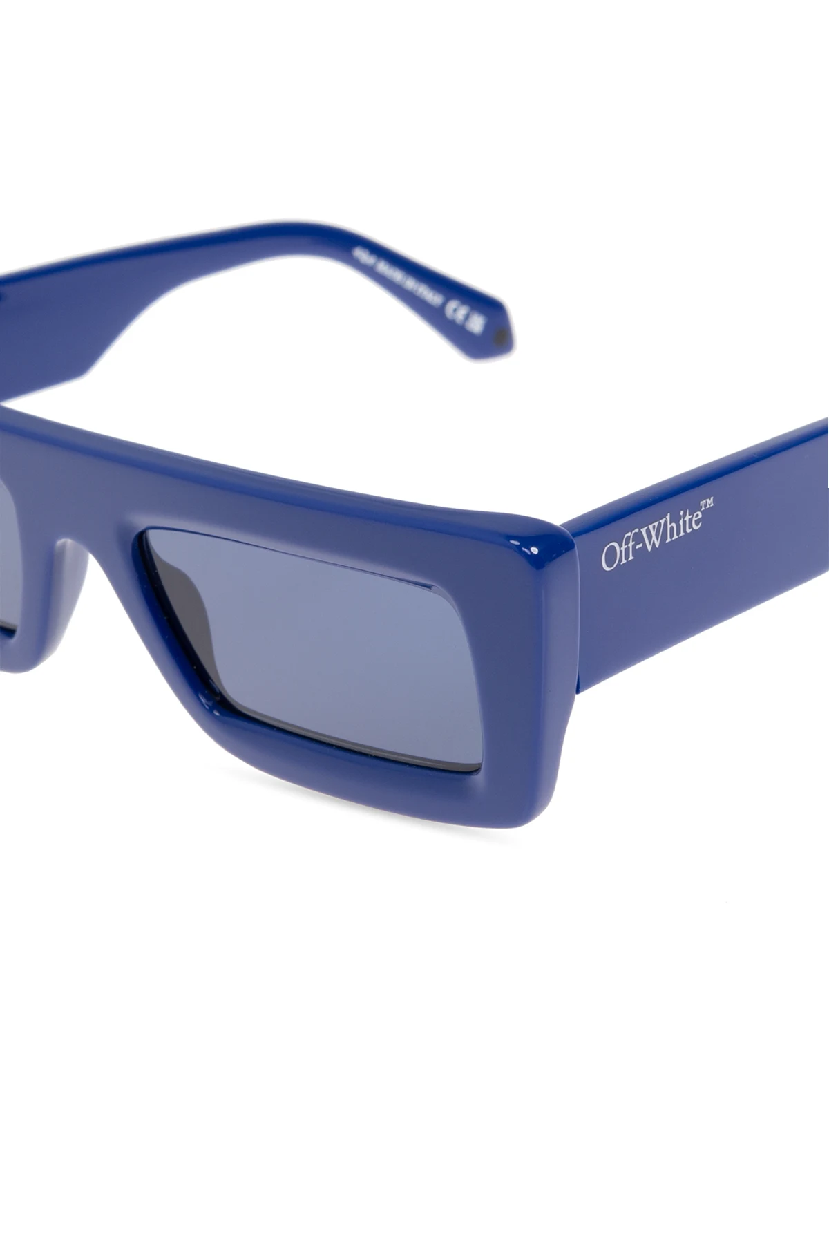 Przedstawiamy okulary przeciwsłoneczne "Ontario" z prestiżowej kolekcji marki Off-White. Te unikalne akcesoria charakteryzują się prostokątnym kształtem oprawek , wykonanych z najwyższej jakości acetatu w dominującym odcieniu niebieskim.