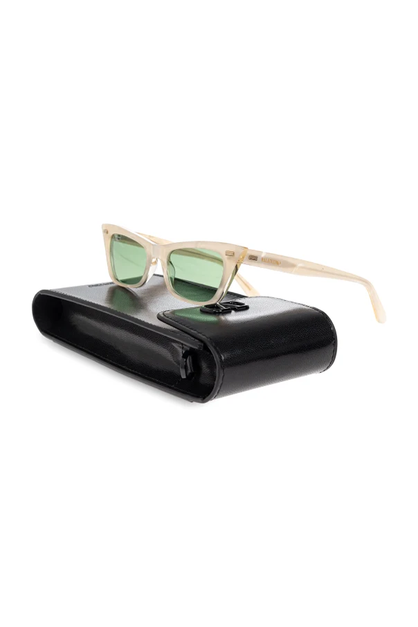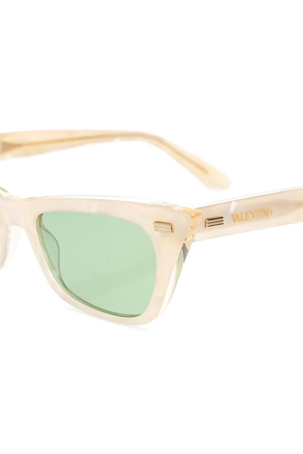 Okulary przeciwsłoneczne VLS-176 marki Valentino Eyewear to synonim wyrafinowanej elegancji, zaklętej w klasycznej formie inspirowanej stylem retro. Oprawki o perfekcyjnie zarysowanym kształcie cat-eye wykonano z ekskluzywnego, lekko połyskującego tworzywa w subtelnym, kremowym odcieniu, harmonizującym z zielonkawymi soczewkami.