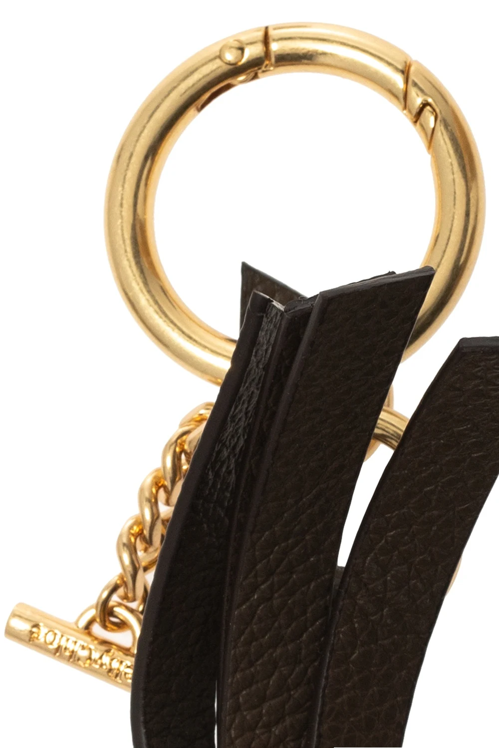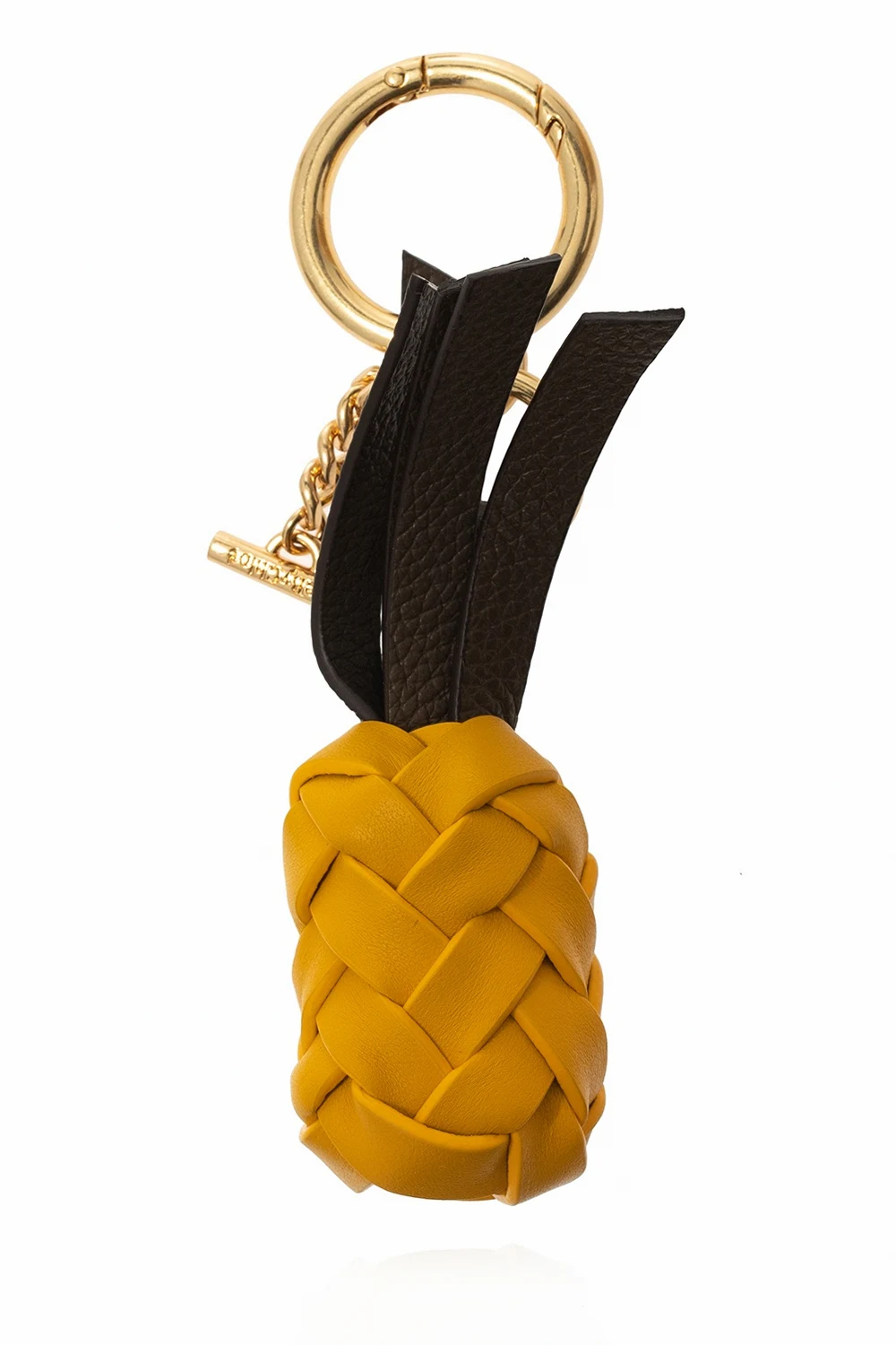 Brelok w kolorze złotym See by Chloé. Ozdobiony skórzaną aplikacją z imitacją ananasa w kolorze żółto-brązowym.