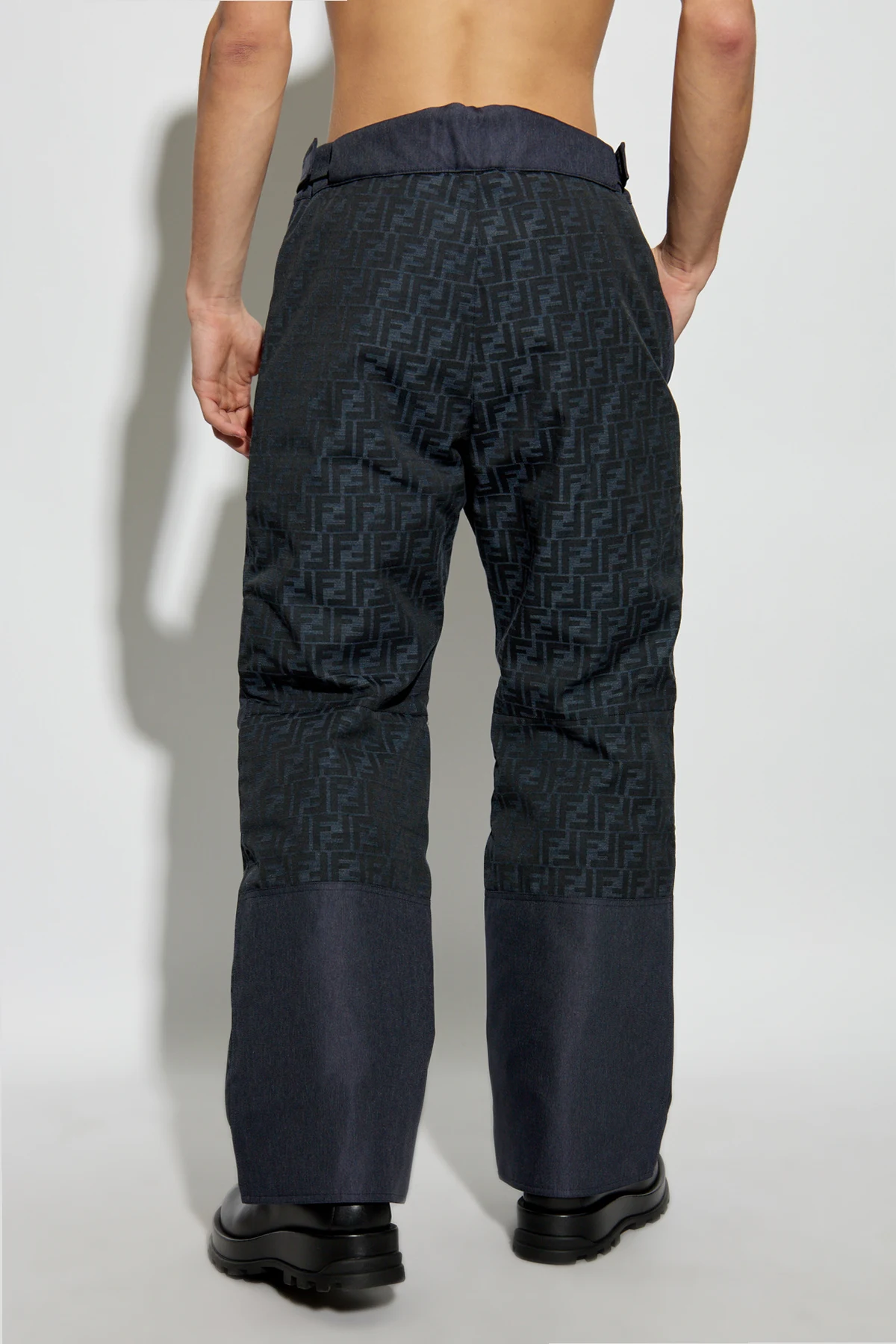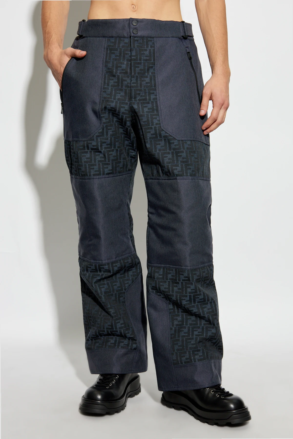 Przedstawiamy spodnie narciarskie z monogramem od renomowanego domu mody Fendi , które stanowią kwintesencję elegancji i funkcjonalności w jednym. Dominującym kolorem jest granatowy , który nadaje całości klasyczny i ponadczasowy wygląd. Monogram subtelnie wkomponowany w materiał dodaje im ekskluzywnego charakteru, podkreślając unikalność projektu.